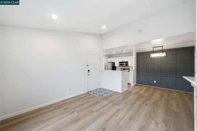 Discover resort-style living at 130 Reflections #28, San Ramon’s peaceful hidden oasis—quiet, private, and surrounded by serene redwood trees. This light-filled top-floor home impresses with vaulted ceilings, designer finishes, fresh paint, recessed lighting, and newer LVP flooring. The updated kitchen shines with modern white cabinetry, chic countertops, and stainless steel appliances. Enjoy an open layout flowing to a spacious patio with tree-line views and extra storage. The generous primary bedroom features a walk-in closet, and the remodeled bath offers modern upgrades. The spacious second bedroom doubles perfectly as an office, den, or flex space, offering versatility for today’s lifestyle. In-unit laundry, newer appliances, and included water and trash add ease to daily living. Set in the gated Reflections community with blue waterways, soothing fountains, and lush landscaping, amenities include a pool, spa, sauna, fitness center, clubhouse, BBQ areas, and walking paths. HOA covers water, sewer, exterior maintenance, and more—plus no rental restrictions for flexible ownership. All just moments from Market Place, City Center, Trader Joe’s, top-rated schools, parks, Iron Horse Trail, and I-680. Don't miss this great opportunity to own in the heart of San Ramon!