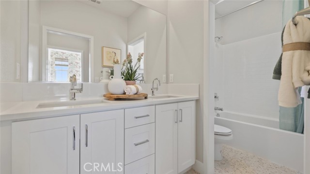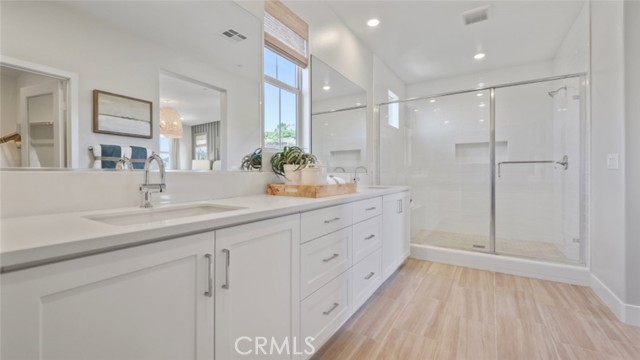 This stunning 4 bedroom, 2.5 bathroom residence offers the perfect blend of comfort and style. With a convenient 2- bay side-by-side garage and side-by-side driveway for an additional 2 cars, this home has all the space you need for modern living, including a walk-in closet for all 4 rooms (2nd floor) and a walk-in pantry. Nestled in a vibrant community, you'll soon enjoy access to fantastic amenities including a sparkling pool, spa, BBQs and a welcoming community center (for residents only) and a sprawling 5-acre city park right in the neighborhood that includes two basketball courts, four pickle ball courts, bocci ball, outdoor playground, bicycle trails a dedicated dog park, and more! This home and its surrounding offer endless opportunities. Do not miss out on the chance to make this exceptional property your own. THIS HOME'S INTERIOR HAS BEEN UPGRADED WITH PREMIUM FLOORING THROUGHOUT AND INCLUDED IN THE FINAL PRICE ... ADDED FOR FREE! Exterior is the desirable "Mission" style elevation.