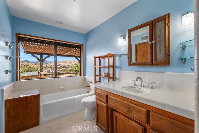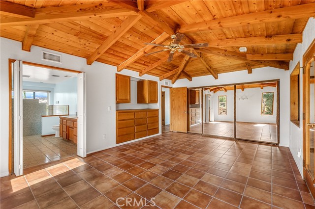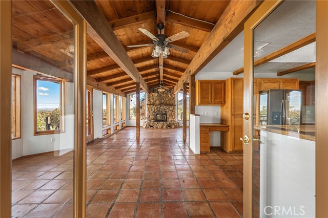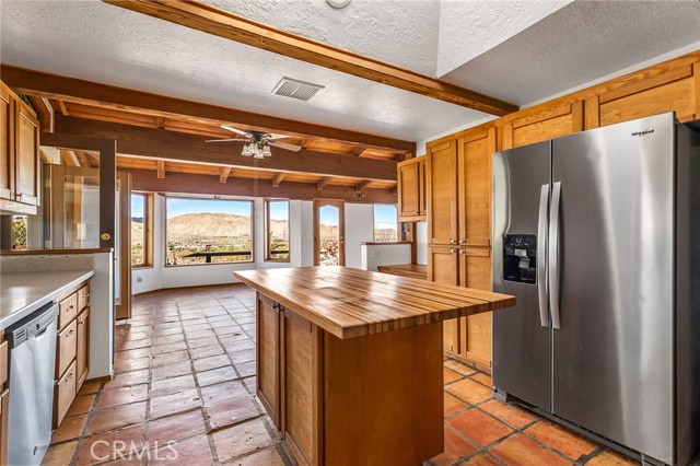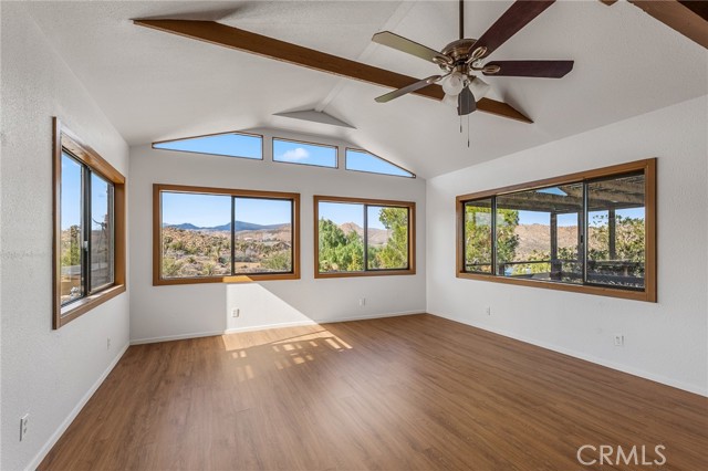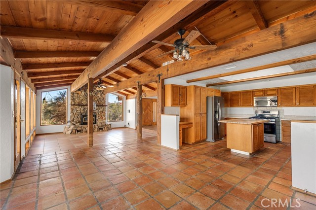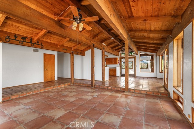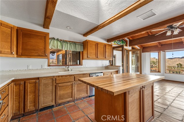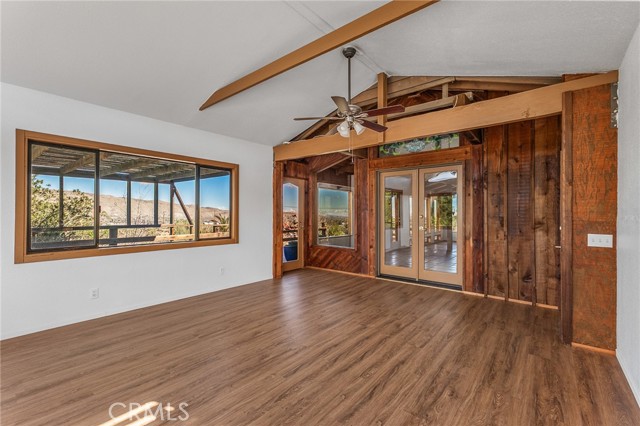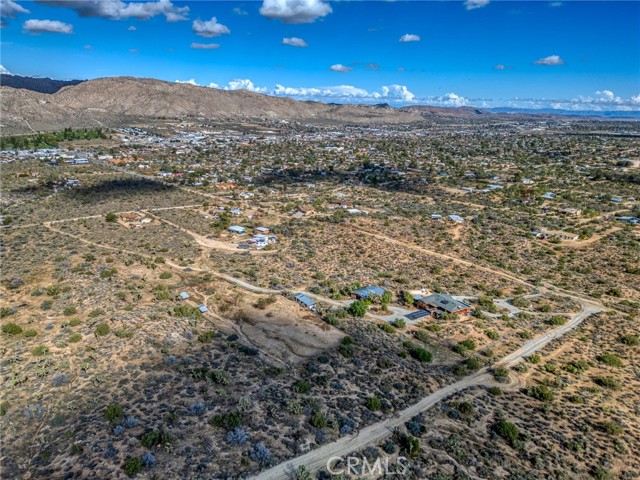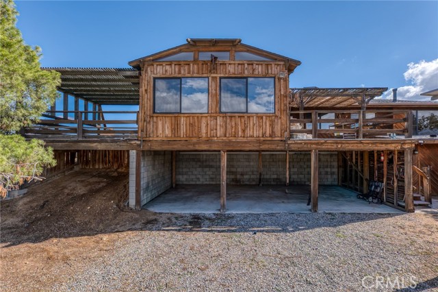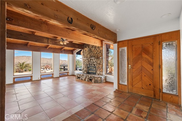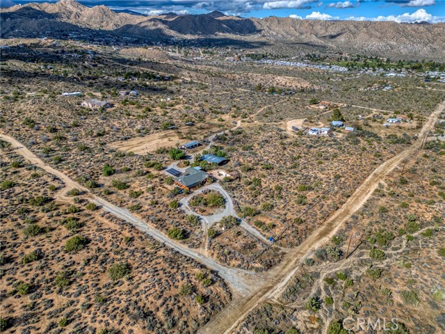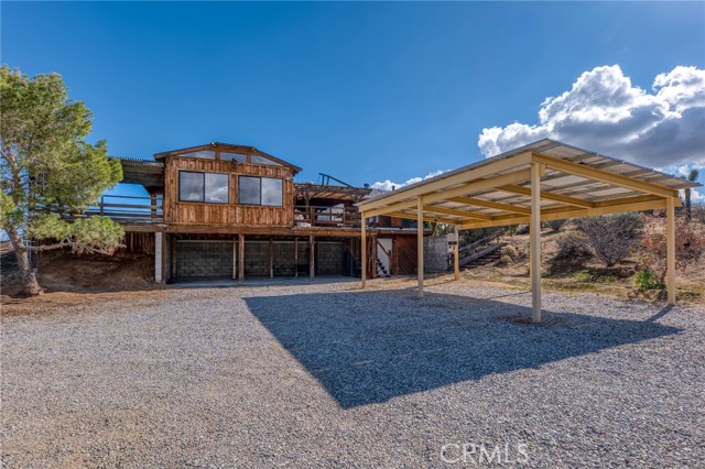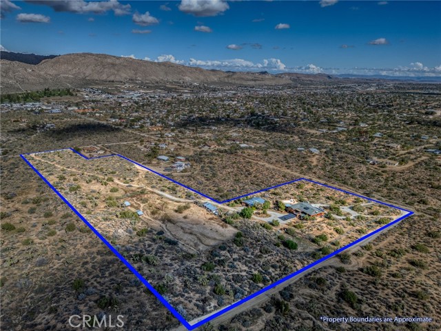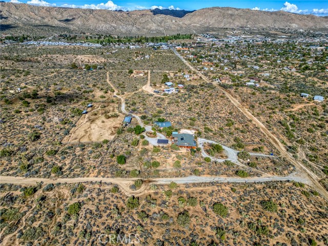 A Desert Artist’s Retreat on 11.69 Acres of Pure Inspiration. Discover one of the most unique and captivating properties in the entire Morongo Basin, a stunning wood-constructed desert retreat set on 11.69 acres of spectacular land with panoramic mountain and desert views in every direction. Properties with this level of land, privacy, and craftsmanship are exceptionally rare. Step inside and immediately feel the warmth of the exposed wood-beam construction, a hallmark feature that brings character, authenticity, and artistry to every room. Expansive windows fill the home with natural light and frame the ever-changing desert scenery, creating a truly inspiring atmosphere. The spacious kitchen opens seamlessly to the dining and living areas, making it ideal for gatherings or quiet evenings at home. The primary bedroom continues the wood-beam theme with rich ceilings and a custom en-suite bathroom featuring a one of a kind shower and bath design. Every space feels intentional, inviting, and unlike anything else on the market. Outside, multiple wood decks and patios provide perfect spots to soak in the desert sun, entertain guests, or simply unwind as the sky turns brilliant shades of pink and orange. A pool and spa, currently drained and unused for years, await your vision to restore them into an oasis once again. The expansive acreage stretches from Mountain View to the next street south and includes multiple barns and arenas, offering endless possibilities, animals, car storage, creative spaces, or whatever lifestyle you envision. The main barn is especially versatile, ideal for livestock or a generous garage/workshop setup. Additional features include owned solar, a private water well, solar panels thoughtfully installed on a separate carport structure, and full fencing with electric gates for added security and privacy. If you value style, craftsmanship, and true desert uniqueness, this extraordinary property must be seen in person. With its rare acreage, wood construction, sweeping views, and endless opportunity, this one stands in a category all its own.