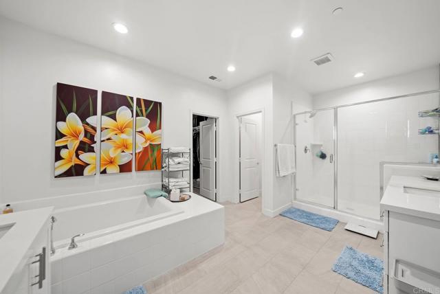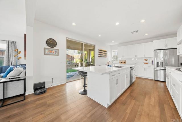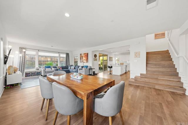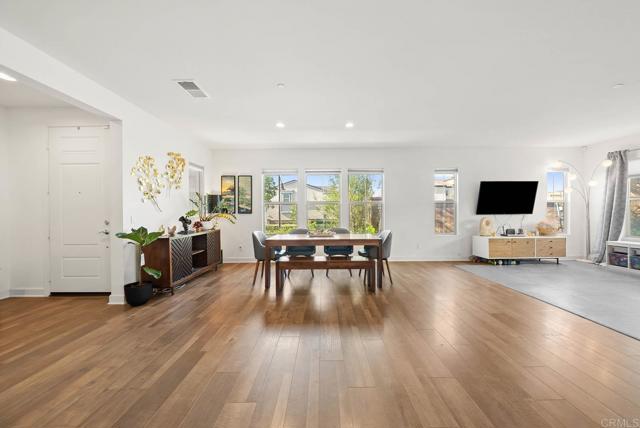 Welcome to 1061 Calle Pilares in the highly desirable Village of Escaya community in Chula Vista, California. This two-story, 4-bedroom, 4-bathroom single-family home offers approximately 2,891 square feet of living space on a highly desired lot that combines modern upgrades, energy efficiency, and community living. Built in 2018 with only one owner, this home features updated flooring throughout both levels, with builder finishes and natural light in every main living space. The open-concept main floor includes a spacious living and dining area, a large kitchen with modern appliances, ample cabinetry, and an oversized walk-in pantry for organized storage. Upstairs, the primary suite includes a spa-style ensuite bathroom with a soaking tub, glass-enclosed shower, dual sinks, and a generous walk-in closet. Three additional bedrooms and multiple bathrooms provide flexible space for family, guests, or a home office setup with upstairs laundry in its own private room. The backyard is designed for comfort and entertaining. The covered patio with recessed lighting overlooks low-maintenance turf landscaping, perfect for outdoor dining or relaxing evenings. The 2-car garage is EV charger pre-plumbed and the home includes solar panels, offering energy savings and eco-friendly living. The usable driveway adds convenience that is only common on select Escaya homes. The Village of Escaya is known for its walkable layout, community parks, and resort-style amenities including a pool, fitness center, and clubhouse. Residents also enjoy access to top-rated Chula Vista schools, local shops, restaurants, Paseo walking trails, 2 Parks, community events, 2 dog parks. Easy freeway access connects you to downtown San Diego, or the Tijuana border the coast, The Cross Border Xpress, and regional attractions within minutes. This property represents an excellent opportunity for buyers looking for a move-in ready home in one of Chula Vista’s most modern and connected neighborhoods.