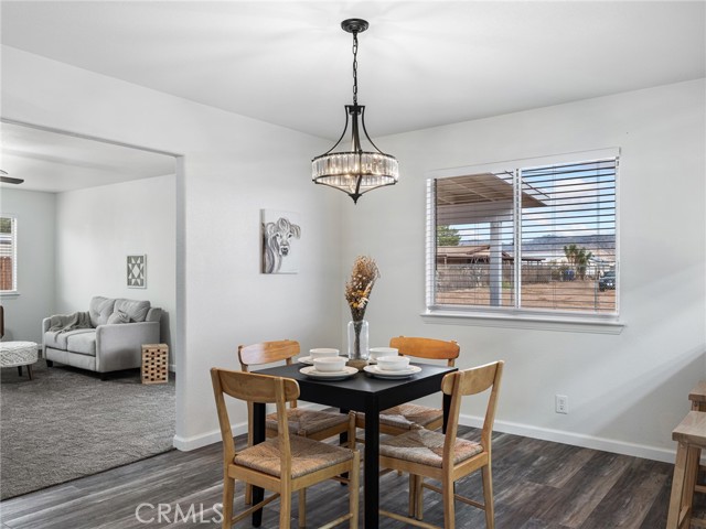 CHARMING RANCH STYLE APPLE VALLEY HOME....Turn-Key Property with New Carpet, New Flooring, New Paint and has Appliances! This Wonderful Single Story Property Features 3-Bedrooms, 2 Baths, Dining Room, Fireplace in Family Room, Living Room, Breakfast Bar. Circular Driveway Situated on Approximately 1/2 Acre, Storage Shed and trampoline stays. Laundry in Garage, Double car garage, Circular Driveway and fence around the perimeter. Don't Miss This One....Just In Time For The Holidays! All Information deemed reliable, but not guaranteed.