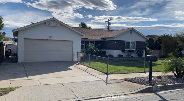 EXCELLENT OPPORTUNITY!! This charming 3 bedroom, 2 bath home is perfect for first-time buyers or investors. Endless possibilities for expansion or rental income. Enjoy modern comforts like newer windows, custom window shutters, crown molding and baseboards. Additional features include laminate flooring, recessed lighting, modern ceiling fans, as well as some new interior doors and upgraded electrical outlets throughout. The home's HVAC, furnace and ductwork system have all been recently installed, ensuring optimal efficiency and comfort. Bathrooms have newer vanities and tile flooring. The garage already offers great potential for additional living space, complete with a private entrance, insulated and drywalled, AC, epoxy flooring, built-in kitchen cabinets and sink, crown molding and ceiling fan. Garage currently used as a Large Family Room. With 8,600 sq ft of land, the possibilities for expansion or development are vast, including the potential to build an ADU in the backyard. The fully fenced front and back yards offer ample space for outdoor living and potential RV parking.