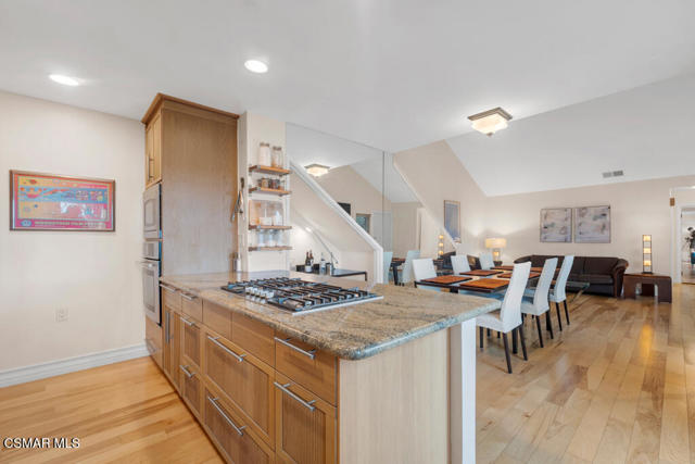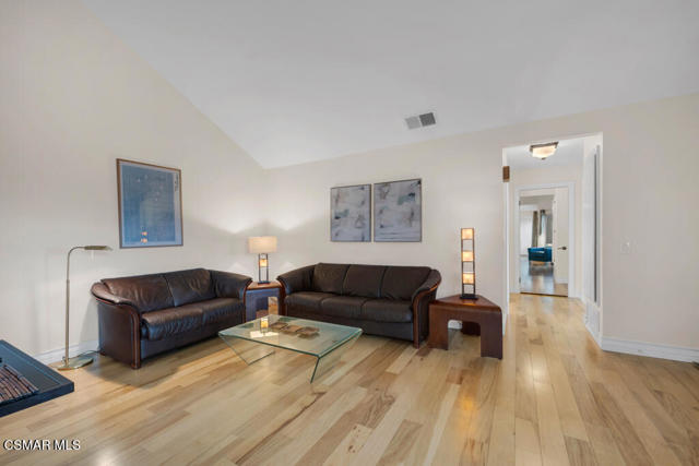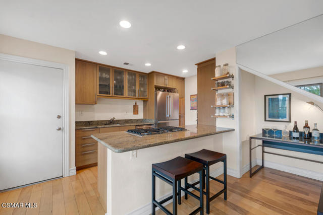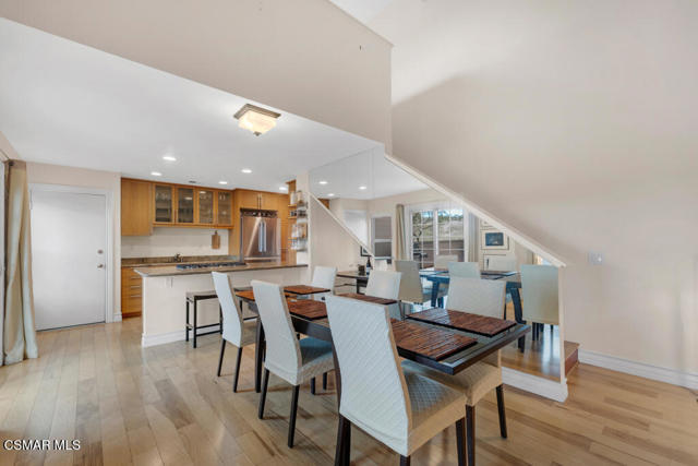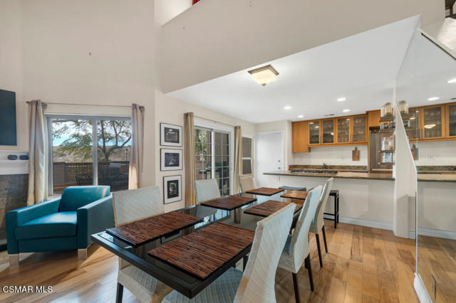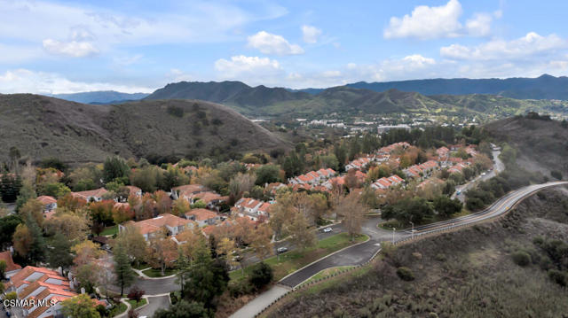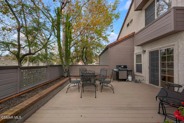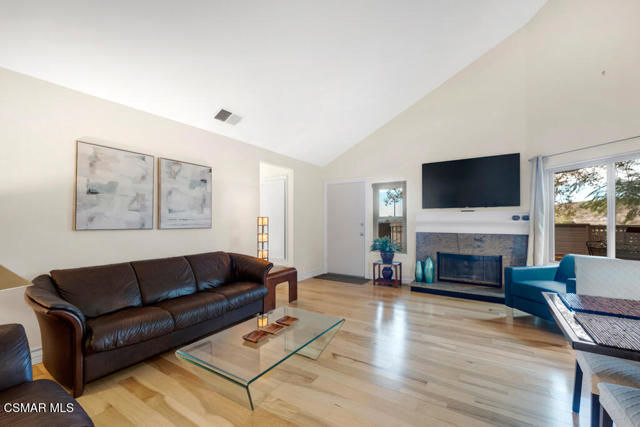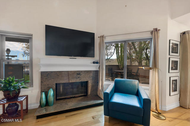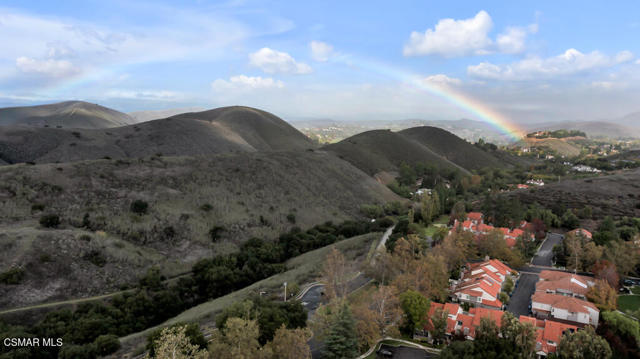 Premium location in Hidden Canyon! End unit with the largest patio and sunset views of the mountains. This highly sought after 2 bed 2 bath floor plan boast a ground floor primary bedroom with a renovated bathroom complimented with oversized shower & travertine tiles along with a private patio dressed with custom paver. The secondary bedroom is upstairs with tremendous privacy and ensuite bathroom. This home has many upgrades including oversized patio with newer deck and custom stone pavers with brick flower beds. The large open floor plan has hardwood hickory floors throughout, granite lined fireplace, double pane windows & perfect for the avid entertainer. The remodeled galley kitchen is open to the dining and family room and features granite counter tops, bosch five burner cook top and a bosch refrigerator along with recessed lighting. 2 car direct access garage along with being in close proximity to one of the larger swimming pools and jacuzzi in the neighborhood.