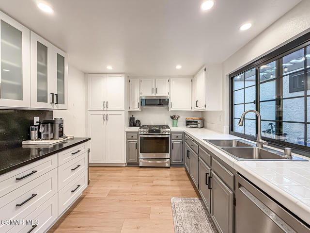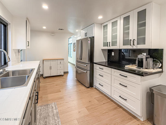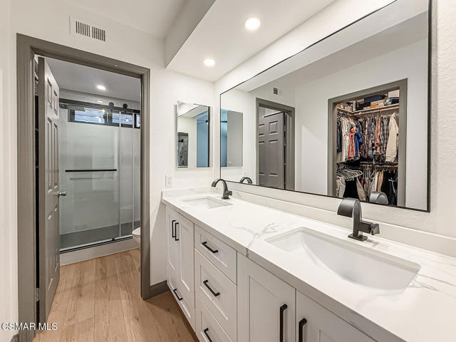 Fairways Patio Homes of Wood Ranch - Renovated and light-filled condo tucked behind the gates of this highly sought-after community. This welcoming home showcases new hardwood floors throughout, a beautifully updated kitchen with modern finishes plus new appliances, and a stunningly redesigned primary bathroom. The downstairs primary suite provides ease and privacy, while additional bedrooms offer flexible space for family, guests, or a home office.Fresh updates include new built-in storage and an enhanced back patio--ideal for entertaining or simply relaxing outdoors. Residents enjoy access to a sparkling community pool and are just moments from Wood Ranch Golf Course, neighborhood parks, and scenic walking trails.A perfect blend of style, comfort, and location--this home is a must-see!