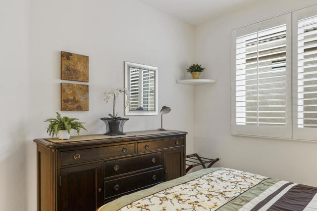 If you are looking for a home where you OWN THE LAND with a Spectacular location then this is it. Featuring the most sought after Saint Andrew's model home on a quiet cul-de-sac with your patio facing a beautiful greenbelt with mountain views. Completely Furnished Turnkey, with Plantation Shutters. This 3-bedroom 2.5 bath home features an open floor plan with natural lighting illuminating throughout the home. The Kitchen features granite countertops, with a center island. This GEM of a home has just undergone over $40,000 worth of upgrades, including Windows with a lifetime warranty, Furnace, Dishwasher, and new Landscaping, just to name a few. For a complete list call the Listing agent. A Golf Cart is included with newer lithium batteries with seating for passengers. Also included two bicycles. The Desert Princess offers a 27-hole PGA championship golf course, with discounts and preferred tee-times for owners with no initiation fees, rated among the best in the valley, beautifully maintained open year-round (except for overseeding). Member golf rates are some of the lowest in the valley. HOA dues include a social membership to the very active golf club, cable internet, including HBO and Showtime, bocce ball and 12 pickleball courts, EV charging stations, tennis courts, and fitness center, 34 swimming pools and spas. Grounds are maintained to your doorstep (you pay only for inside water). Desert Princess Country Club is conveniently located just minutes away from Palm Springs International Airport, Downtown Palm Springs, restaurants, shopping, nightlife and hiking. Several casinos are nearby. Agents be sure to show your buyers the restaurant, clubhouse, tennis courts, and fitness center.