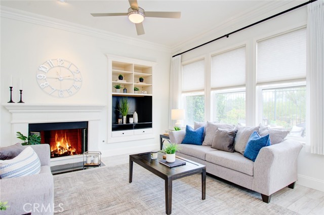Welcome to this beautiful single-story residence featuring 3 bedrooms and 2 full baths, with one bedroom thoughtfully converted into a home office. Enjoy stunning panoramic views of Saddleback Mountain from the kitchen, family room, and expansive back patio. Located in the prestigious guard-gated community of Coto de Caza, one of Southern California’s most picturesque neighborhoods, this home offers elegance, comfort, and an inviting open floorplan. A dramatic high-ceiling foyer sets the tone the moment you step inside, leading to bright and spacious living areas. The kitchen is appointed with quartz-style countertops and stainless-steel appliances, while plantation shutters throughout add charm and privacy. The primary suite features double-door access to a private patio—perfect for unwinding at sunset—along with a master bath offering a separate shower and relaxing step-in tub.The back patio is ideal for al fresco dining and entertaining, complete with motorized retractable awnings that provide sun or shade on demand. The low-maintenance front yard includes attractive turf landscaping, and the neat, organized two-car garage offers built-in storage. Coto de Caza residents enjoy access to two renowned Robert Trent Jones Sr. 18-hole golf courses, miles of trails, parks, and an unmatched sense of tranquility. This is California living at its finest—elegant, peaceful, and perfectly situated.