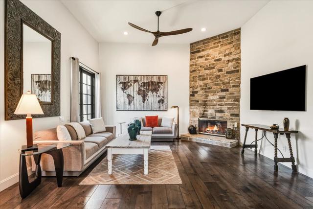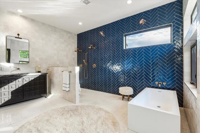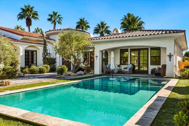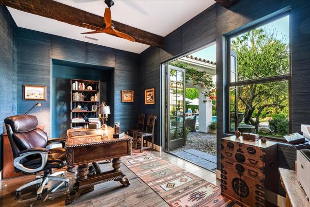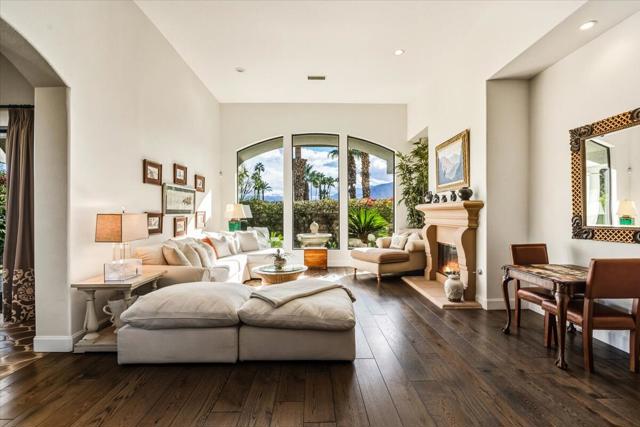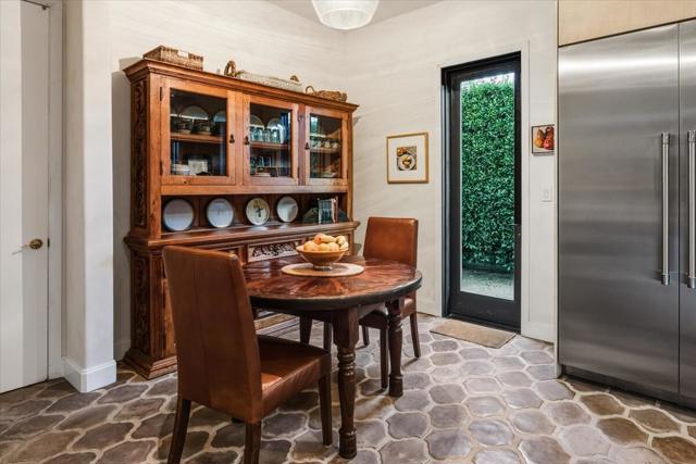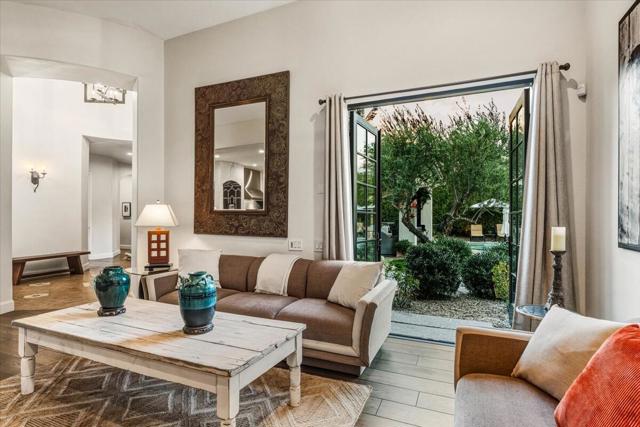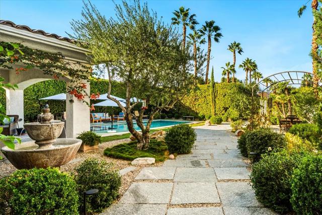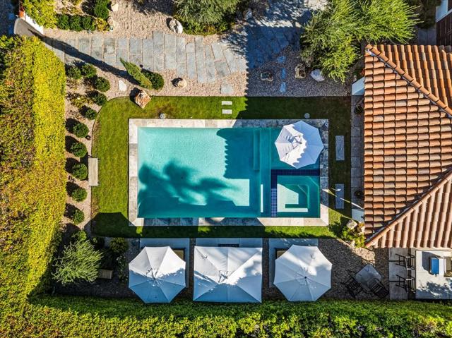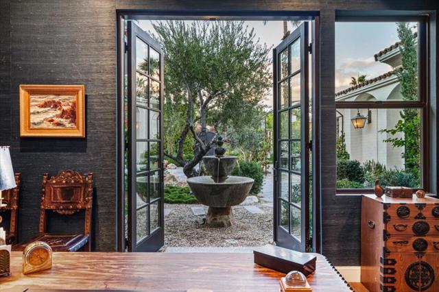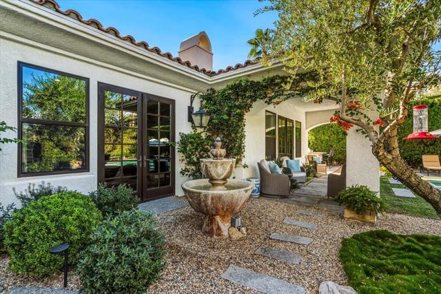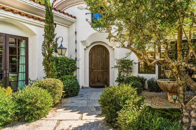 Welcome to the coveted enclave of The Colony at El Mirador. This gated retreat blends Santa Barbara coastal architecture with contemporary style and was reimagined from top to bottom -- new windows, a stunning chef's kitchen, a luxurious primary suite, and pool and spa framed with Italian quartz and Spanish tile. Enter through a serene courtyard dotted with mature olive trees, an Indian granite walkway, vintage fountains, and multiple alfresco dining spaces, including an outdoor kitchen designed for the indoor-outdoor chef. Inside, hand-painted tiles, wood flooring, soaring ceilings, and curated color palettes create effortless warmth. The living room captures dramatic mountain views, while a cozy family room offers a second fireplace. The kitchen is a showstopper with Thermador appliances, custom cabinetry and Quartzite and Dekton counters. The elegant dining room and inviting wet bar make entertaining a joy. The cerulean office overlooks the pool and you are serenaded by one of the many fountains on the property. The primary suite is a sanctuary with smooth plaster walls, a fireplace, Italian marble finishes, imported bathtub, and a custom wardrobe room. Additional highlights include two outdoor dining areas, owned solar, and a temperature-controlled 3-car garage. Experience the quality and craftsmanship of this exceptional home.