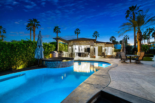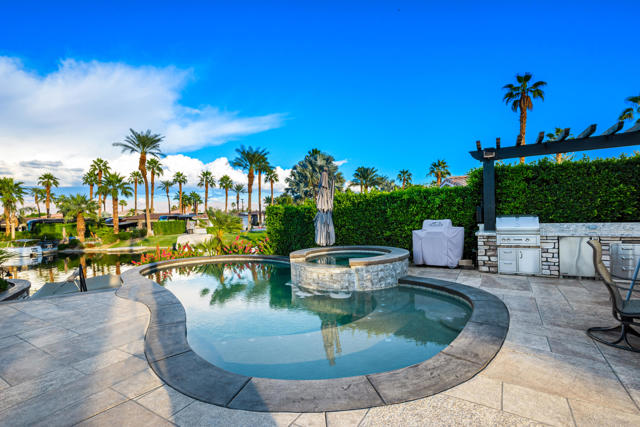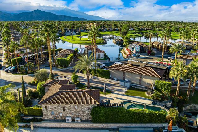 One of Motorcoach Country Club's most exceptional offerings. Lot 320 is an oversized, elevated corner water lot that feels like a double lot--yet with only one set of dues. Its unique positioning provides panoramic mountain views to the east and west, along with beautiful water views, all while offering an extraordinary level of privacy rarely found on a canal-front location.A large circular driveway, separate from the coach parking pad, provides abundant parking and includes the golf cart with your purchase. Beyond the private gated entry, the outdoor living space offers a large fire pit with seating for six, an overhead awning that provides shade and retains warmth, three permanently mounted cantilever umbrellas, a pop-up swivel TV, and an additional fire feature at the coach pad. The pool and elevated spa are exceptionally private and overlook the east canal and mountains. A custom staircase leads to your private dock, where an Electracraft boat--also included--awaits.Inside, bi-folding lanai doors open into the stunning 706 sq. ft. coach house. The chef's kitchen features a massive island with seating for six, under-counter wine fridge, reverse osmosis system, KitchenAid appliances, Wolf range with custom hood, full-size pantry with slide-out shelving, and hidden outlets for a seamless backsplash. The living area includes a linear Avanti fireplace, TV with soundbar, tinted glass, and electric drop screens discreetly built into custom soffits for shade and privacy. Double sliders open to an elevated private patio with mountain views, a drop-screen awning, and thoughtfully designed landscaping that provides privacy without obstructing scenery. The entire property is powered by a premium Control4 smart-home system managing lighting, music, shades, and more.The casita offers two wardrobes, a large built-in 180 bottle wine fridge, and a beautifully finished 3/4 bath with a full tile shower. Custom French doors open directly to the outdoor fire pit area. Additional storage and a full-size stacked washer/dryer are conveniently located inside for your convenience.Motorcoach Country Club is an exclusive, guard-gated Class A luxury motorcoach resort requiring coaches 30'-45'. Owners enjoy world-class amenities including golf, a 5-star clubhouse, fine dining at Top of the Falls, a yacht club, fitness center, three pools, tennis, pickleball, and over two miles of stunning waterways.