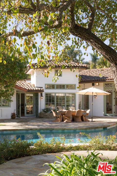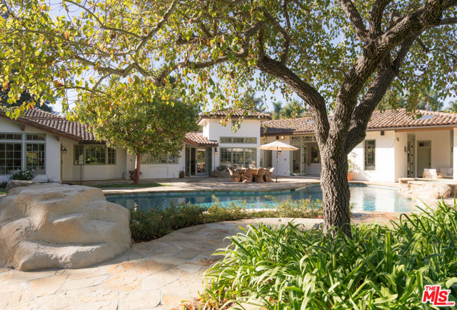 A portrait of refined California living, this renovated Hope Ranch estate blends thoughtful updates with timeless beauty both inside and out. Privately situated on nearly 1.5 gated acres, the single-level +/- 6,200 sq ft residence captures the essence of Hope Ranch living: elegant, peaceful, and seamlessly connected to the outdoors. The property's lush, park-like grounds are both immersive and calming, while its generous amenities including a refreshing pool and spa, a tennis court, and an expansive attached pool house/activity room make this the ideal home for quiet relaxation or effortless entertaining.Inside, the residence reflects a cohesive vision of modern refinement. Recent renovations include updated flooring, new paint, and carefully selected finishes, all contributing to the home's pristine, move-in-ready aesthetic. Throughout the home, expansive windows frame verdant outdoor views and welcome abundant natural light. Outside, meandering pathways wind through rose gardens, citrus trees, towering redwoods, and tranquil water features that converge harmoniously to create a true sense of escape.The generous floor plan includes 5 bedrooms, 6 full bathrooms, and 2 half baths, along with exceptional spaces designed for comfort and versatility. The living room, dining area, family room, and stunning kitchen & breakfast nook provide abundant gathering spaces for daily living, while sunlit nooks, custom built-ins, cozy fireplaces, and picturesque windows lend a sense of delight and discovery at nearly every turn.Just beyond the main living areas and adjacent to the pool patio, the expansive attached pool house/activity room offers a beautiful extension of the home. Flooded with natural light, this flexible space is well-suited for entertaining, wellness pursuits, creative endeavors, or even as additional guest quarters. Next to the activity room, a luxurious and cozy home theater with a loft/kids' play area guarantees enjoyment of the space for all ages.On a secluded wing of the home, the primary suite is an alluring getaway featuring a fireside sitting area, dual bathroom suites and walk-in closets, a luxurious soaking tub, and a private laundry room. Nearby sits an additional guest bedroom, as well as a magnificent wood-paneled office, providing a serene and private room for work pursuits. A comfortably separate bedroom wing with 3 additional bedrooms and a dedicated study/homework space offers wonderful flexibility for family or guests. A 3-car attached garage and second laundry area add everyday convenience to the home's thoughtful layout.Positioned near the entrance to Hope Ranch yet quietly tucked away, this gracious property offers ready access to the community's signature amenities miles of equestrian trails, the prestigious Hope Ranch Beach with private access, and the tranquility of this celebrated coastal enclave. Although you're just moments from Santa Barbara's finest dining, beaches, and amenities, the setting feels worlds away, offering the perfect escape without sacrificing convenience. Beautifully updated and rich in character, this exceptional estate combines luxurious living with an inviting sense of charm bright, serene, and filled with moments of daily inspiration.