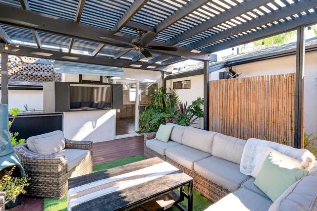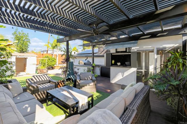 Wonderful opportunity to own a true gem in the heart of La Mesa with paid solar! This home is full of all the character you want in a home. Original hardwood floors, fresh neutral paint inside and out, brand new finished kitchen cabinets with quartz countertops and new backsplash. Two custom bathrooms. This home is perfect for entertaining! The huge eat-in kitchen with an island leads out to the perfect Southern California backyard oasis. Step out onto your covered Trex deck and enjoy the built-in barbecue and kegerator. An outdoor shower is handy for after those beach/surf days. There is a separate artificial turf yard with a raised garden bed. Detached large shed with electrical, which can be used as a workshop, storage, or? Included also: solar, upgraded electrical, new tankless water heater, and electric car charger.