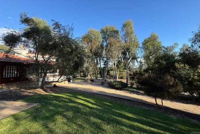 Ralph H. Reisinger-designed 1994 Spanish hacienda, single-owner, never remodeled, original condition. 4 BR | 3.5 BA | 3,774 sq. ft. Classic U-shaped plan centers on a tiled Cantera fountain courtyard. Deep covered arcades wrap three sides with banks of French doors opening from nearly every room. Saltillo tile floors indoors and out. Exposed beam ceilings, arched doorways, barrel-arch passageways, three fireplaces (two-sided living-dining, family room, primary). Primary wing: bedroom with fireplace, sitting room, walk-in closet, en-suite + adjacent private study with separate courtyard entrance. Guest wing: Two ground-floor bedrooms and a second-story casita with full bath and large loggia overlooking courtyard and southern valley. Covered outdoor kitchen/grill in arcade. 3.18 gently sloping acres with mature gardens, eucalyptus, citrus, lawns and room for guest house, pool, tennis, stables or vineyard. Deep drive-through garage. Authentic Cliff May-inspired Covenant hacienda with expansion land.