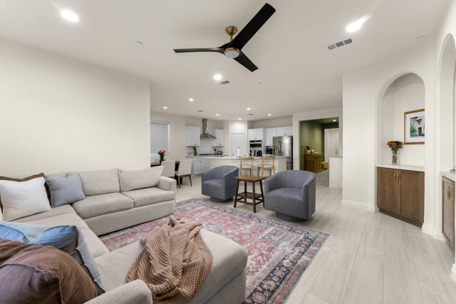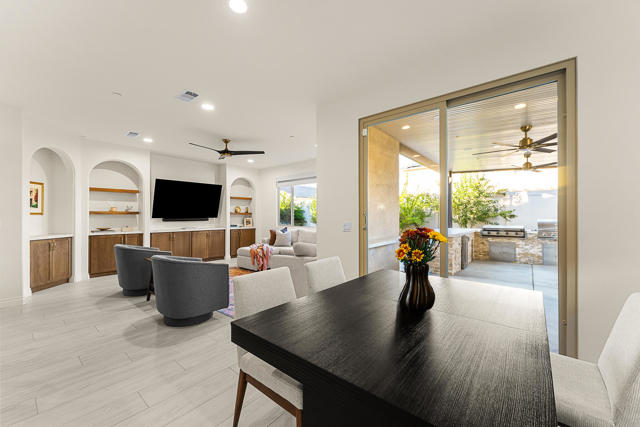 Experience comfortable living and thoughtful upgrades throughout this 4-bedroom, 2-bathroom home with 1,960 sq ft of interior space. From the moment you walk in, the custom walnut built-ins immediately make a statement offering beautiful storage, warm textures, and LED-lit arches that elevate the entire living room.Entertain with ease thanks to the built-in bar with mini fridge and optional shelving space. The chef's kitchen is truly the heart of the home and one of the features that sold the current owners designed for everyday living and weekend hosting.You'll also appreciate the spacious walk-in laundry room, a generous primary bedroom, and well-designed secondary bedrooms that offer flexibility for family, guests, or workspace needs.The outdoor living is just as impressive:Front patio with fan perfect for morning coffeeBack patio with fan + LED lightingFull outdoor kitchen: grill, griddle, mini fridge, and sink. Outdoor entertainment area with TV & speaker connections. Landscape lighting throughout the front and back. Plenty of space for a future poolThis property blends style, comfort, and functionality inside and out. A must-see for buyers looking for a home that's truly move-in ready with room to grow.