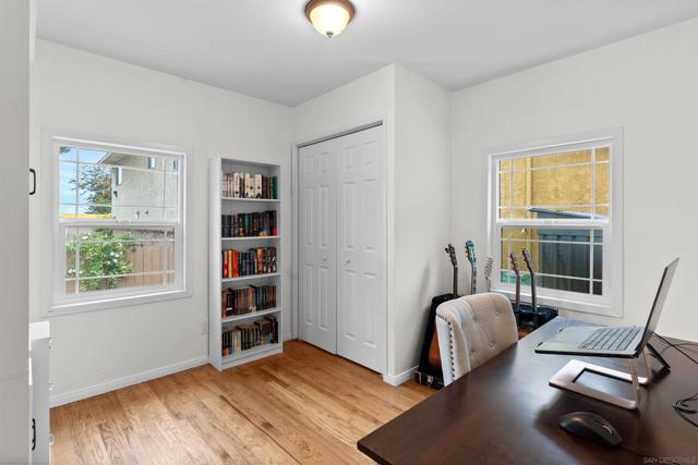 With tons of natural light, this beautiful 3 bedroom, 2 bathroom home features hardwood floors, a spacious kitchen, large primary suite with a recently updated bathroom and walk-in closet and a cozy private yard. The large garage also serves as an excellent storage space. With a brand new roof and upgrades, this is the perfect San Diego home. Conveniently located near the I-15 and I-8 freeways, this home is within close proximity to schools, parks, shopping centers, and eateries and just a short 15 to 20-minute drive to San Diego International Airport, enhancing its appeal for frequent travelers with a blend of comfort and accessibility.