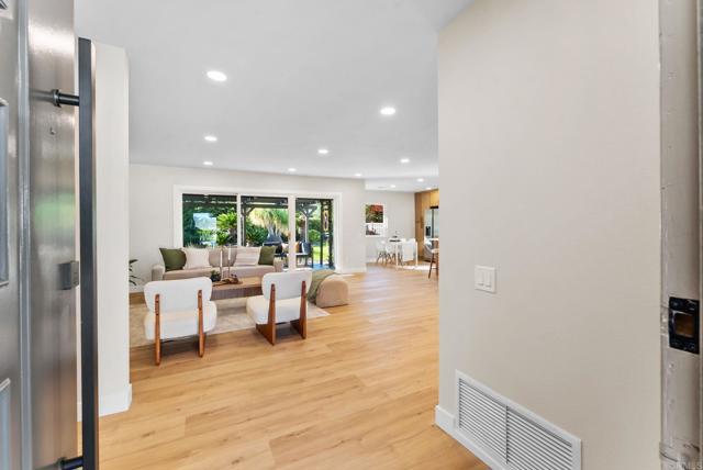 Tucked away in a cul-de-sac, this beautifully remodeled 3-bedroom, 2-bath home blends comfort, style, and ease of living in a highly desirable 55+ community. Step inside to an open, warm floor plan filled with natural light, updated flooring, modern lighting, and fresh paint. The kitchen has been fully remodeled with upgraded cabinetry, stylish countertops, and stainless steel appliances. The spacious primary suite offers generous closet space and an updated bathroom, while the two additional bedrooms provide flexibility for guests, a home office, or hobbies. Outside, the property truly shines. The garden is perfect for enjoying your morning coffee, unwinding in the evening, or simply taking in the peaceful surroundings. The home features two outdoor seating areas, one ideal for hosting family and friends, and another tucked away for a more private, secluded retreat. Residents have access to a fantastic community center that includes a swimming pool, tennis courts, and a recreational area for activities and gatherings. Conveniently located near shopping, dining, and major freeways, everything you need is close by. Move-in ready and thoughtfully upgraded, this is a must-see home in one of the area’s premier senior communities.