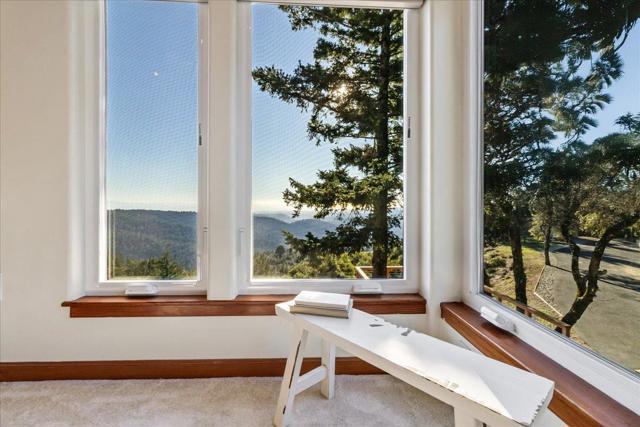 Clouds Rest is a private 4 bed, 2 bath modern mountain home with jaw-dropping views in Los Gatos. Perched above the marine layer on 3.048 gated acres, this 2,578 sq ft retreat blends luxury, nature, and soul-stirring scenery. A private electric gate at the top of the driveway opens to panoramic vistas, upgraded landscaping, and expansive outdoor living. The home features a beautifully updated chefs kitchen with stone countertops, stainless appliances, custom cabinetry, and exposed beams. A brand-new spa-like primary bath, new Milgard Styleline vinyl windows, and seamless indoor-outdoor flow connect you to a new sunset view deck perfect for entertaining or peaceful solitude. Outside, enjoy a fully equipped outdoor kitchen, bar, fire pit, and hot tub surrounded by custom concrete patios and natural beauty. Additional highlights include an EV-ready carport, whole-house Generac generator, large shed, water softener, and extensive storage. More than just a home, Clouds Rest is an experience: quiet winter mornings filled with true silence, summer nights spent stargazing and watching meteor showers, and a feeling of serenity that makes you want to come home early from vacation. All of this just minutes from downtown Los Gatos, Silicon Valley, and coastal escapes.