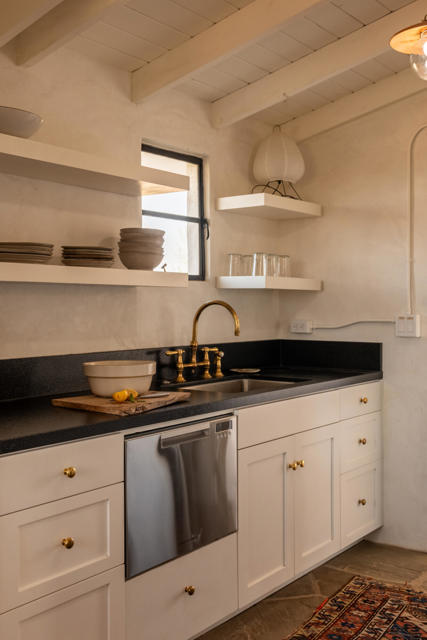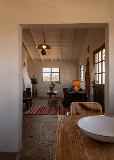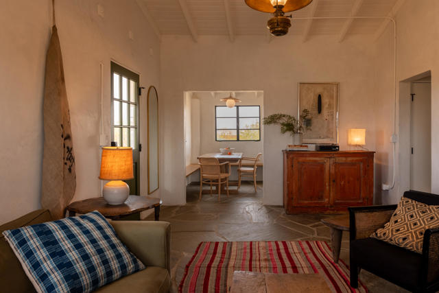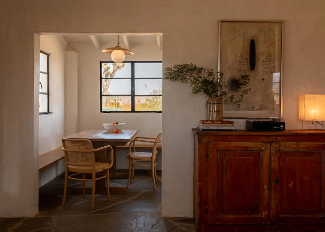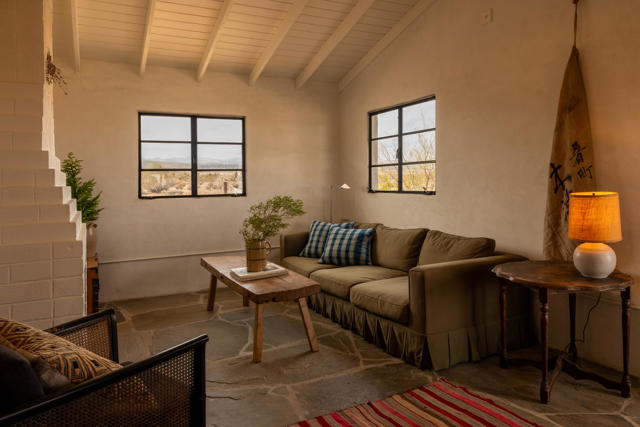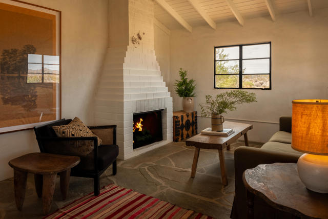 A quiet, design-forward refuge on five pristine acres in the high desert, Heiwa Cottage balances simplicity with a rare sense of intention. Thoughtfully reimagined and updated throughout in 2021 with meticulous attention to detail and quality craftsmanship, the home was shaped with a focus on form, function, and timeless comfort. Its inspiration, part Scandinavian fisherman's cottage, part Japanese country home, comes through in the warmth, restraint, and quiet beauty that define the space. Inside, two bedrooms and two bathrooms are unified by flagstone floors and an original brick fireplace that anchors the living room. The primary suite opens directly to a sun-washed patio with a pool, spa, and outdoor shower, creating an effortless indoor outdoor flow that feels natural to desert living. Set within an incredible native garden, the property blends seamlessly into its surroundings, offering privacy and an unmistakable sense of place. Brought to life by Todd Nickey, co-founder of the acclaimed design studio Nickey Kehoe, Heiwa Cottage stands as a refined and rare retreat in Yucca Mesa, equally suited as a full-time residence, an incredible vacation home, or a high-performing short-term rental. Just 15 minutes from Joshua Tree National Park.