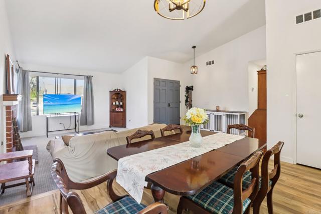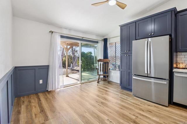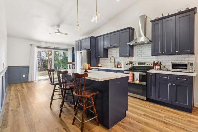 This single-story 4-bed, 2-bath home sits on a deep lot overlooking expansive canyon, backing to open space for added privacy. Inside, a vaulted great room anchors the layout, complemented by a bright dining area and a comfortable living room that flows naturally toward the outdoors. The fully remodeled kitchen features stylish modern cabinetry with a rich navy finish, crisp quartz countertops, a classic subway-tile backsplash, stainless steel appliances, and a well-placed island finished with warm pendant lighting. Wide-plank LVP floors bring a clean, modern feel through the main living areas, while both bathrooms have been tastefully updated—one highlighted by a dual-sink vanity. Sliding doors open to a covered patio and a canyon-view deck, creating inviting spaces for relaxed, low-maintenance outdoor living with room to personalize. The generous lot also offers the potential to accommodate an ADU. Additional touches include recessed lighting and a two-car garage. All set in a convenient Mira Mesa location close to neighborhood parks, everyday shopping and dining along Mira Mesa Blvd, and with easy access to the 15 and 805 freeways.