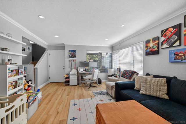 Welcome to a warm community in the heart of Mira Mesa, a beautiful starter 2 bedroom home, open floor plan with newly upgraded kitchen, spacious backyard for entertaining guests. Fresh paint with elegant molding and wooden laminate flooring in the living room and ceramic tiles in the kitchen.