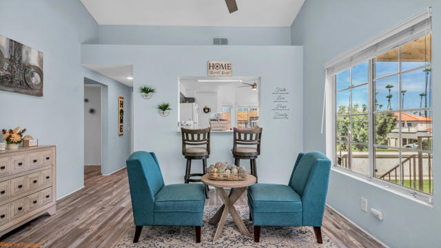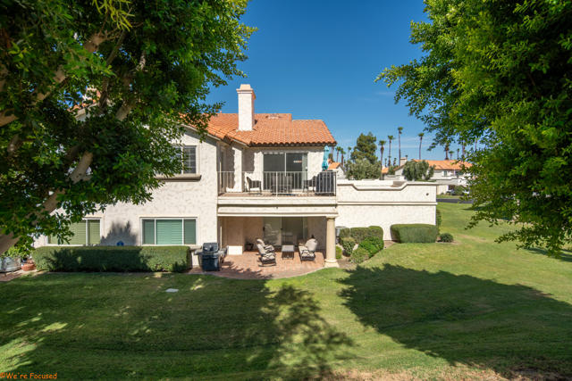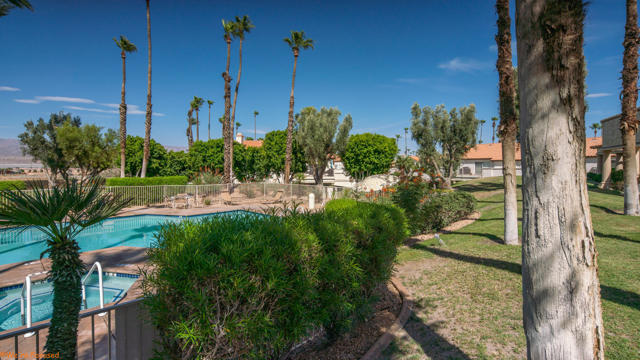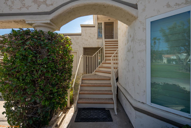 Country Club living at its best! This furnished upper-unit condo features 2 bedrooms and 2 bathrooms. Enjoy a beautiful view of the swimming pool from the patio off the living room. Additional highlights include a fireplace, dry bar, and breakfast nook. The kitchen boasts designer quartz countertops and comes fully stocked.HOA dues include your social membership to Desert Falls Country Club, offering access to fitness facilities, tennis courts, and pickleball courts, as well as 35 pools and spas. Golf is semi-private--play as you go or join with a membership. The clubhouse offers a full bar and both indoor and outdoor dining with gorgeous mountain, fairway, and water-feature views. This 24/7 guarded and patrolled gated community provides exceptional peace of mind.Ideally located near Acrisure Arena for hockey and concerts, Agua Caliente Spa & Casino, McCallum Theatre, The Living Desert, and El Paseo--a two-mile boulevard of upscale galleries, boutiques, and fine dining restaurants.