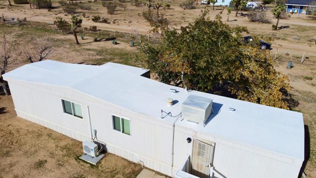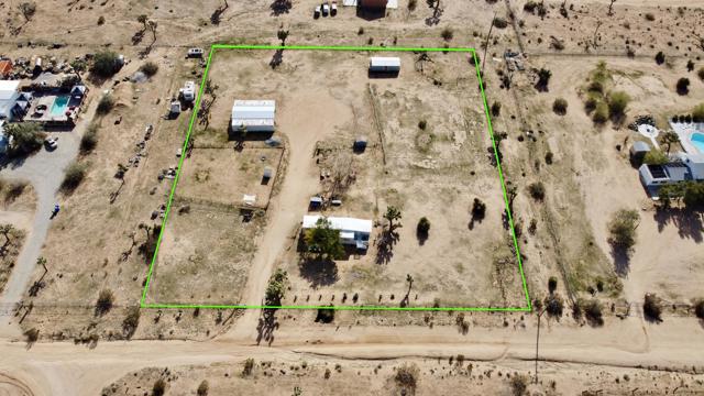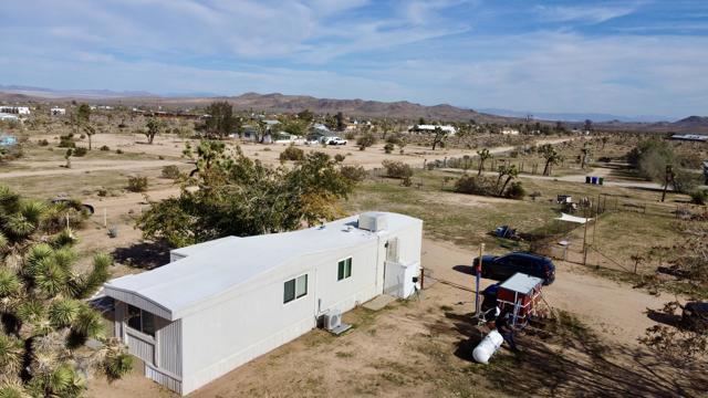 Welcome to 57775 Junipero Trail. This property is full of opportunity at an amazing prize. 2 bed, 1 bath manufactured home sitting on 2.4 acres of pristine fully fenced land in Yucca Mesa. The home has been meticulously taken care of inside and out. Wood plank flooring adorns the living spaces and kitchen, and home features newer vinyl windows. Keep cozy as this home is serviced by a 2 ton mini split A/C for heating and cooling. This property has full perimeter fencing and is flat and usable. Multiple livestock pens are conveniently already provided. On top of everything mentioned, this property will convey with 2 - 8'x40' storage containers which have been modified as workspaces. In between them is an RV awning equipped with 220V wiring and running water. Build a couple of ADU's or build a separate primary and keep the manufactured home as an ADU, there are many possibilities to achieve your vision. Call for your private showing and see this blissful place for yourself. Your ranch awaits!