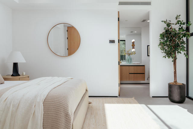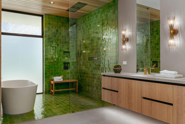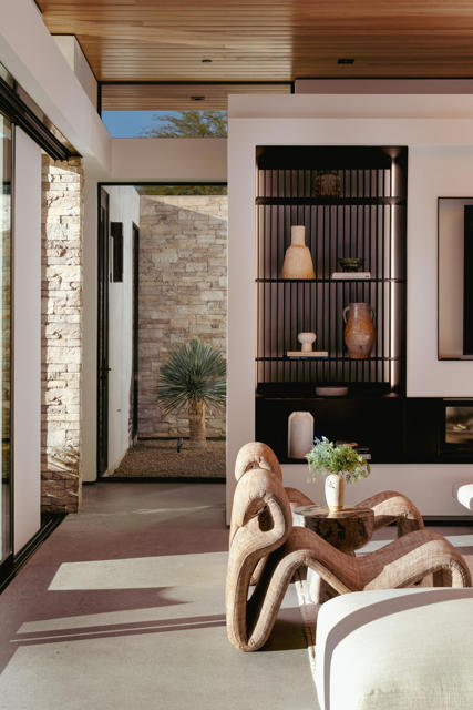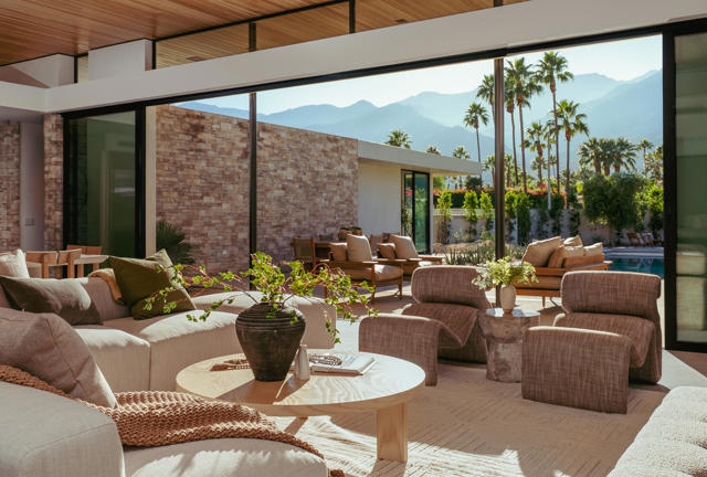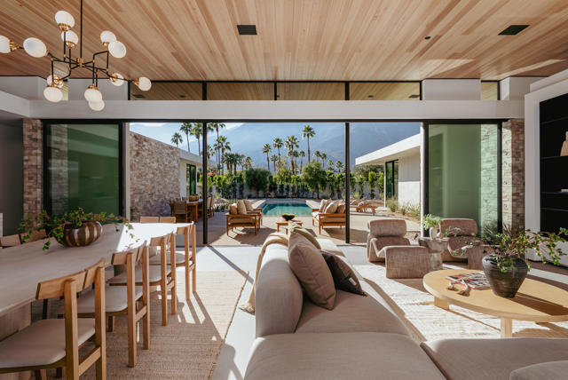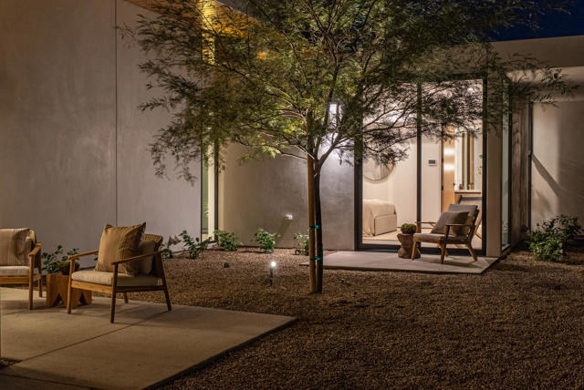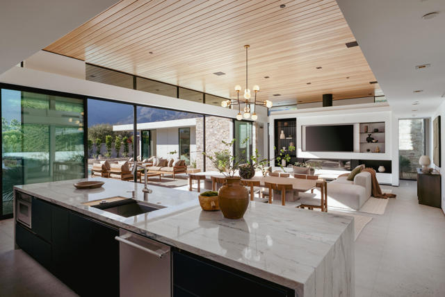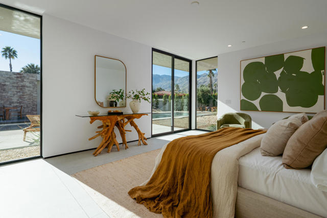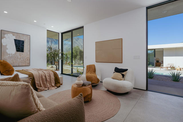 Architecture, location, views. Organic modern finishes and luxury amenities. Thoughtful, fully custom, new construction in Andreas Hills, one of the best neighborhoods of South Palm Springs. Designed by Lance O'Donnell AIA of O2 Architecture. Four bedrooms, each with a private bath, one as an attached poolside casita. 21,344 sq ft very private corner lot. The views of the mountains in all directions are extraordinary, with the living room and pool lined up to directly face the famous ''sleeping giant'' ridgeline. The list of luxury details and amenities is extensive: a climate-controlled garage, high-density insulation, sound-attenuated walls, Level 5 smooth finish walls, smooth stucco exterior, hemlock tongue and groove ceilings, diamond-polished concrete floors, floor-to-ceiling rift-oak doors, high-efficiency window walls, double walk-in closets in the primary and a six-foot-wide pivot entry that frames the landscape. Interiors highlight craftsmanship at every turn: custom cabinetry with Gola pulls, Brazilian quartzite surfaces, handmade Moroccan tile, floating vanities, and a 72-inch linear fireplace wrapped in a custom iron surround that serves as both sculpture and structure. Technology is well integrated: 14.3 kW solar array with Tesla Powerwall backup, Lutron Caseta smart controls, Sonos audio inside and out, prewired shade pockets, Ring surveillance, and five independent high-efficiency Trane HVAC zones--including the garage--deliver comfort and resilience. The kitchen program features Thermador appliances in the main house and Bosch in the casita, alongside a butler's pantry with additional sink, dishwasher, and storage. Outdoors, the landscape is fully realized: mature olives, palms, mesquites, rostradas, aloe, ocotillo, jasmine, and desert spoons are layered with architectural lighting and six-foot garden walls lined with eight-foot ficus for complete privacy. The pool is designed as an extension of the architecture, with a tanning shelf, integrated seating, generous spa, pebble finish, salt system, and LED lighting powered by Pentair equipment. Hemlock-clad automated gates, a built-in barbecue island, gas fire pit, and dedicated service zones complete the outdoor program. This is a property that must be seen to be believed. True luxury in one of the best locations.