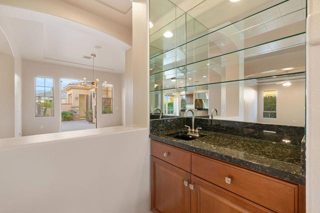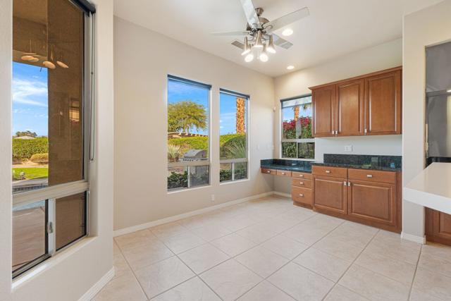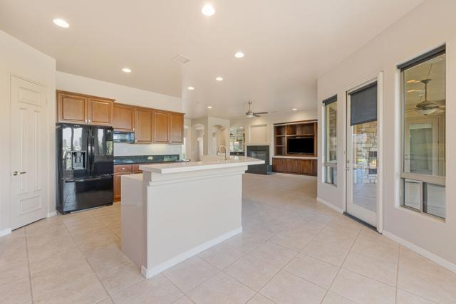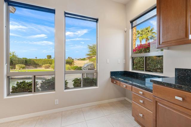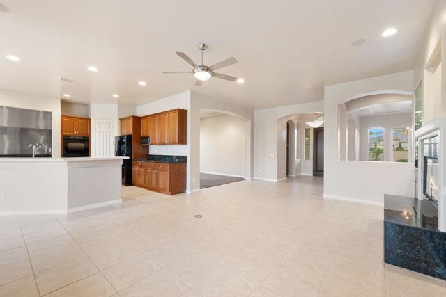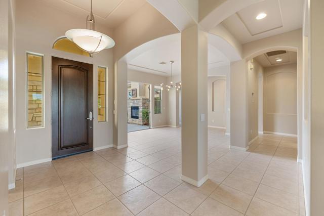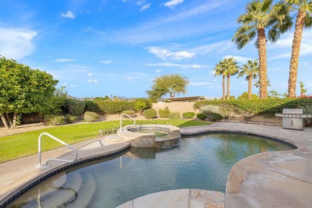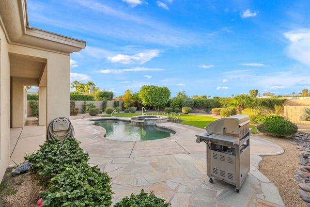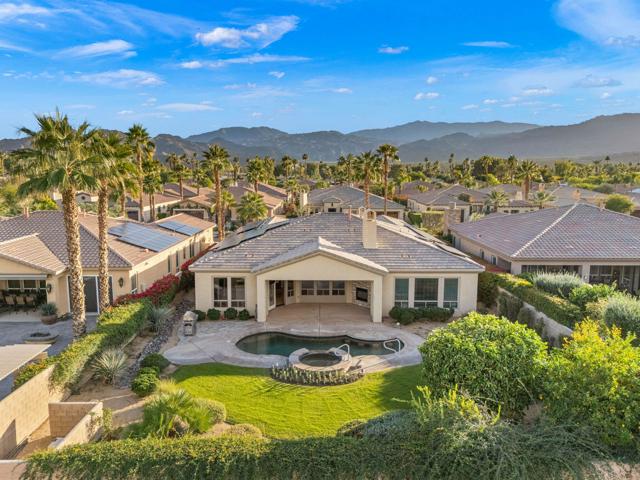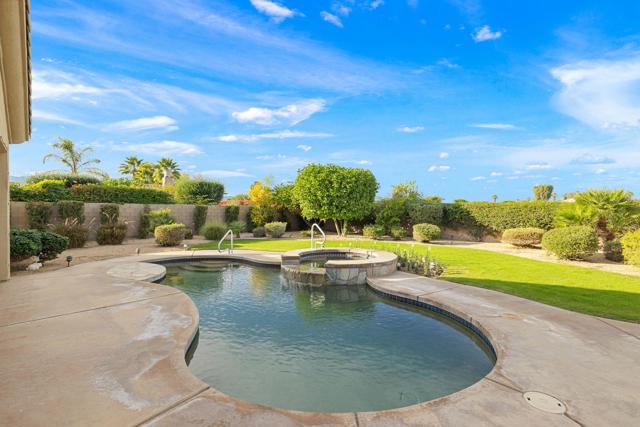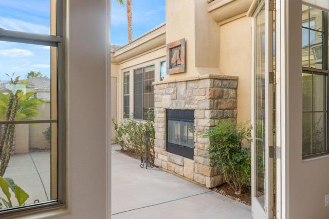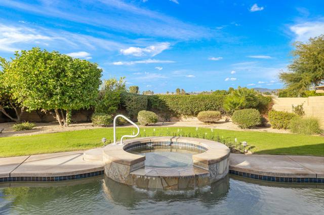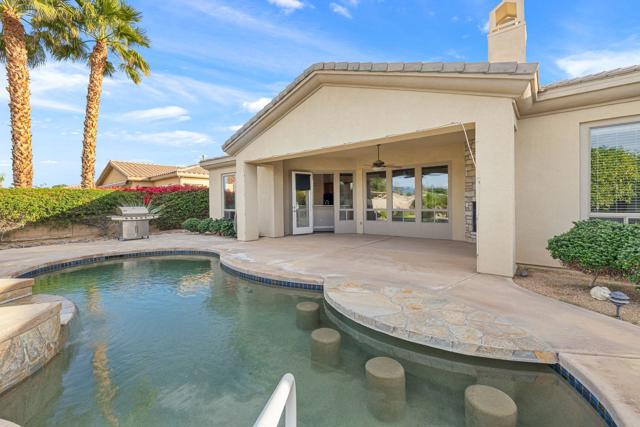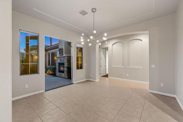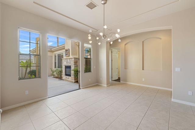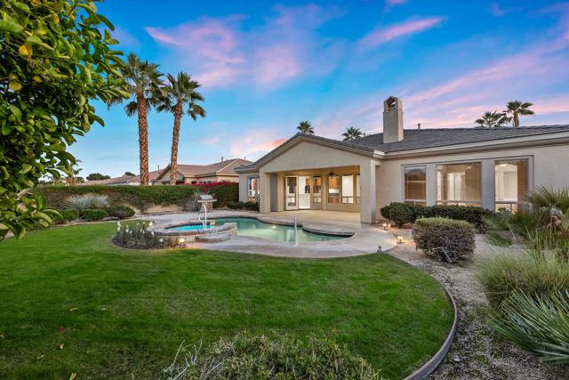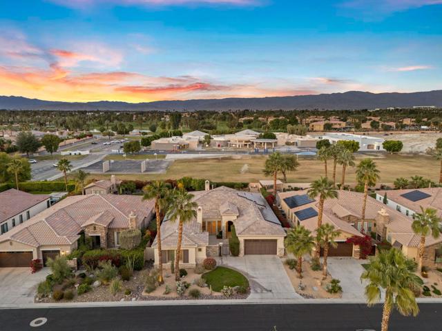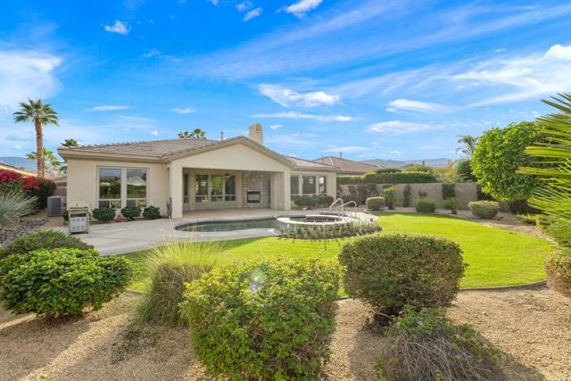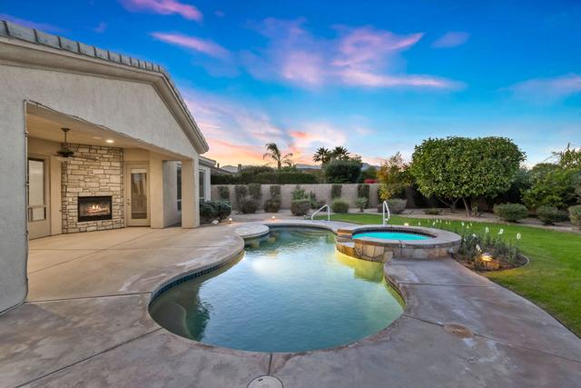 This spacious 4-bedroom, 4-bath residence is located within the desirable gated community of Venezia in North Palm Desert. The home offers a thoughtful, open layout with multiple areas to relax, work, and entertain. Upon entry, you're welcomed by a formal dining room, a large living room, and a versatile bonus space ideal for an office or additional seating area. The well-appointed kitchen features granite countertops, a breakfast bar, a dining nook, stainless-steel accents, a walk-in pantry, and a convenient pot-filler above the cooktop. Outdoor living is exceptional with a Pebble-Tec pool and spa with submerged seating, a spacious covered patio, and mature fruit trees that enhance the backyard setting. Three fireplaces throughout the home create warm, inviting spaces both indoors and out. Additional highlights include a three-car garage and low HOA fees, offering excellent community value. Located just minutes from golf, dining, shopping, and all that North Palm Desert has to offer. This home also includes a prepaid Sunrun Solar Agreement, in effect until 2035. The system is a fully prepaid power service agreement with no monthly solar payments due during the 20-year term. Owner does not own the solar panels, but has paid for the power upfront.