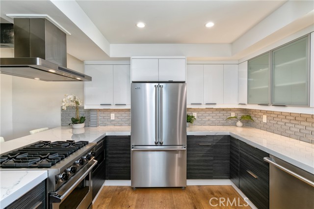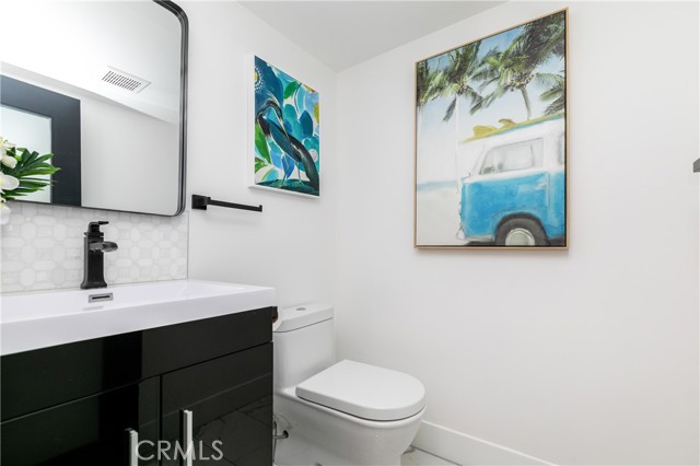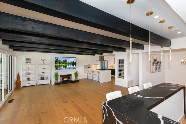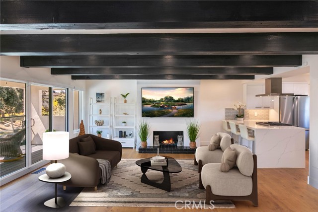 Located in Huntington Beach, Surf City! Step into timeless design and effortless luxury in this stunning residence where contemporary sophistication seamlessly elevates mid-century vibes. From the moment you arrive, double entry doors welcome you into a light-filled haven, thoughtfully curated for both relaxation and entertaining. The chef’s kitchen is a culinary dream—featuring white Euro cabinetry, Quartz counter tops, all Viking appliances, built-in wine cooler, and sleek lines that echo the home’s architectural pedigree. Exposed beamed ceilings and natural light pouring through skylights and expansive windows create an airy, open ambiance throughout. Retreat to the expansive 400 sq/ft primary suite, where a private balcony invites coastal breezes and sun-filled mornings. Indulge in the spa-inspired ensuite bath with marble flooring, boasting a luxurious rain shower, deep soaker tub, dual vanity with abalone shell backsplash and backlit vanity mirror, and a custom-designed wardrobe closet fit for a king. This exceptional home features three bedrooms and four baths and was completely renovated with attention to detail in 2023. Spanning 2,246 square feet, an open floor plan, wood floors, a custom glass staircase, and designer finishes. Enjoy indoor-outdoor living at its finest with tranquil outdoor seating areas, a zero-scape patio for effortless maintenance, and a refreshing plunge pool and spa complete with a natural rock fountain. Minutes from Surfing, Bike riding, Paddle boarding, Bolsa Chica Wetlands trail & dog-friendly beaches. This residence offers the perfect blend of coastal lifestyle, thoughtful luxury, and architectural distinction. Welcome to your modern sanctuary by the sea.