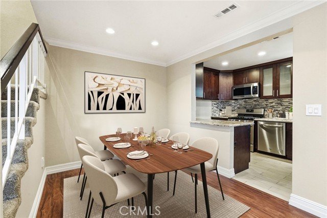 Welcome to this beautifully remodeled 4-bed, 2-bath townhouse in the highly desirable Briarcliffe community in Reseda. Thoughtfully updated, this home showcases a custom kitchen featuring sleek stainless-steel appliances, ample cabinetry, and designer finishes, all overlooking the dining room. The spacious, light-filled living room is enhanced by recessed lighting, elegant crown molding, and opens through sliding glass doors to a generous private patio ideal for outdoor dining and entertaining. The home offers one versatile bedroom downstairs, ideal for a home office, den, or playroom, while three generously sized bedrooms await upstairs, including a large primary suite complete with mirrored closet doors and custom shelving. Both bathrooms have been fully upgraded with modern fixtures and finishes. Additional highlights include laminate flooring, recessed lighting and crown molding that elevate the space. No expense was spared in the remodel, resulting in a move-in-ready home with quality upgrades rarely found at this price point. The private two-car garage offers secure parking and laundry. The community itself is beautifully maintained and includes a sparkling pool, tennis courts and lush greenbelts. Centrally located with easy access to Ventura Blvd and the 101 Freeway, this home combines comfort, convenience, and lifestyle in one unmatched package. Don’t miss your opportunity to live in one of Reseda’s most coveted communities.