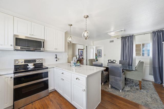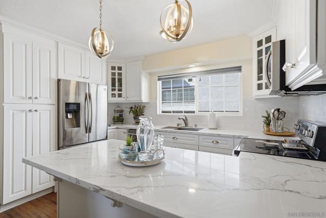 Welcome home to this beautifully updated 4 bedroom, 2 bath, and a spacious 2-car garage, ideally situated in a quiet San Diego neighborhood. Thoughtfully refreshed throughout, this home offers a perfect blend of comfort and functionality. The modernized kitchen features stainless steel appliances, updated custom cabinetry, contemporary finishes, and ample counter space, perfect for everyday cooking and entertaining. Both bathrooms have been upgraded, with the primary suite showcasing an oversized standalone shower and a large soaking tub, creating a spa-like retreat right at home. The versatile floor plan provides room for a home office, guest space, or additional bedroom, allowing you to tailor the home to your lifestyle needs. Enjoy year-round comfort with central AC/Heating and a bright interior that flows effortlessly to the outdoors with sliders off the living room and master bathroom. Step outside to a beautiful, private backyard with no rear neighbors, offering serene views and a peaceful setting for gatherings, gardening, or simply unwinding in your own quiet oasis. The 2-car garage provides plenty of storage and convenience, while the location offers quick access to shopping, parks, dining, and major freeways. Move-in ready and full of charm, this home is the perfect combination of modern upgrades and everyday living.