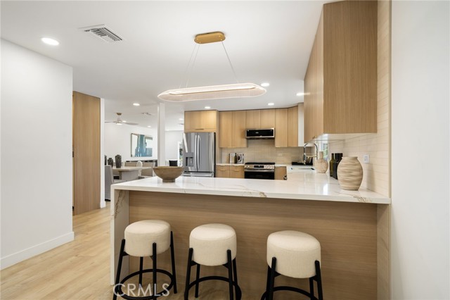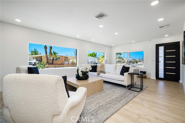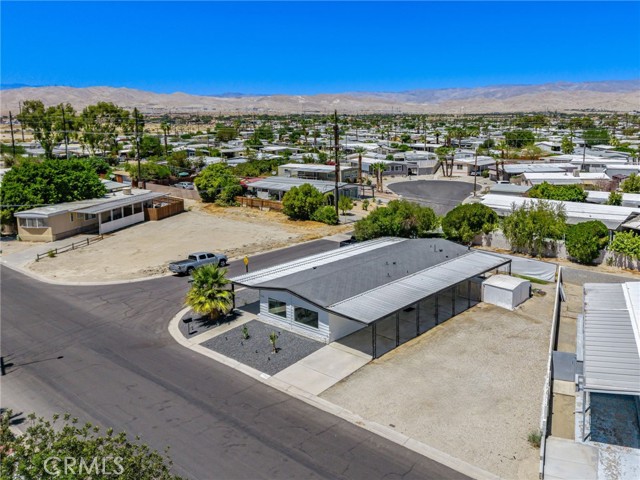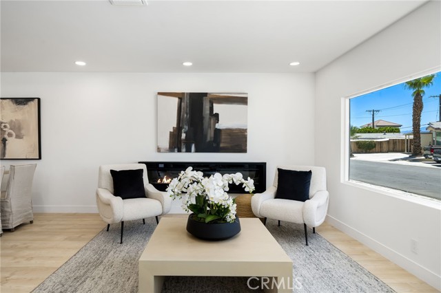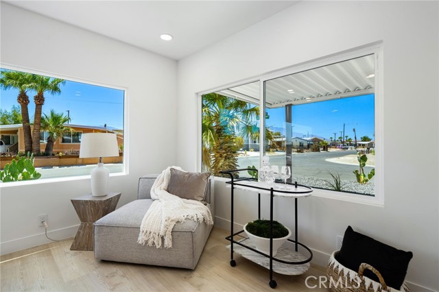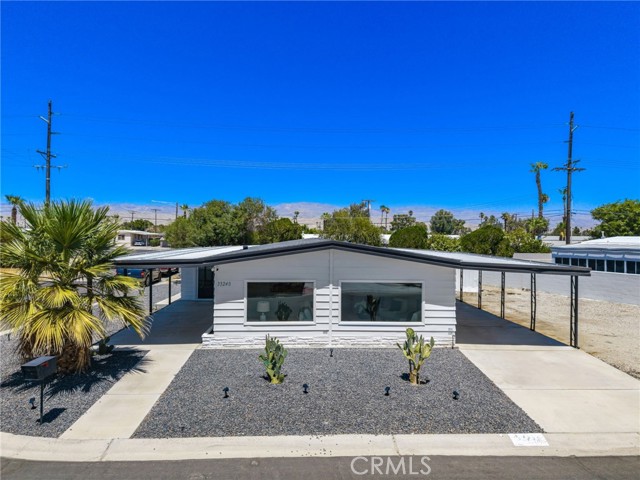 PRICED TO SELL! Welcome to the nicest home in Tri Palm Estates & Country Club! From the level-5 smooth finish drywall to the designer tile and quartz waterfall countertops - no detail was overlooked, and no expense was spared. Fully renovated with new systems and the highest quality designer finishes. Gorgeous kitchen with new white-oak cabinets with a soft close, quartz countertops with a waterfall edge, oversized peninsula with bar seating for three, stylish limestone backsplash, and brand-new stainless-steel appliances including a 36' French door fridge and workstation sink. The designer went the extra mile with a luxurious 80'' high efficiency electric fireplace, one-of-a-kind brass fixtures, elevated aluminum and glass closet doors, and solid core steel exterior doors. Primary bedroom has a resort style feel with a large seating area and bathroom with an oversized freestanding soaking tub, walk-in shower with LED-lit niches, and a custom dual sink vanity. Fresh-modern style with recessed LED lighting and timeless white-oak LVP flooring. Brand-new central HVAC heat pump system with a 10-year warranty. Oversized carport, enclosed storage area, and a large side lot. Oversized interior corner lot. Fee land with low HOA (55+). 433a enables VA, FHA, conventional loans, and reverse mortgages for ease of financing. Ground level, no interior or exterior steps, and curb-less walk-in primary shower. Enjoy two 18-hole golf courses, multiple swimming pools, hot tubs, tennis courts, shuffleboard, pickle ball, putting green, billiard room, clubhouse and a bar/restaurant. Major stores like Costco and Walmart are just up the street. Amazing Hiking and Natural Oasis nearby at Thousand Palms Oasis Preserve. Close proximity to the $300 million, 11,000 seat Acrisure Arena: home of the Coachella Valley Firebirds hockey team. Acrisure Arena is major attraction hosting concerts, sporting events and more totaling 120+ events annually. You've seen all the other sleepy homes on the market. Now is your chance to live bold! This home will make you the envy of your neighbors and a favorite party host! Furnishings available to purchase.