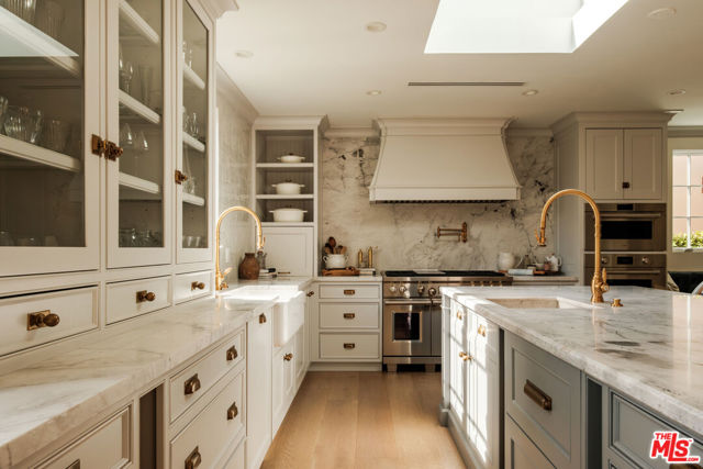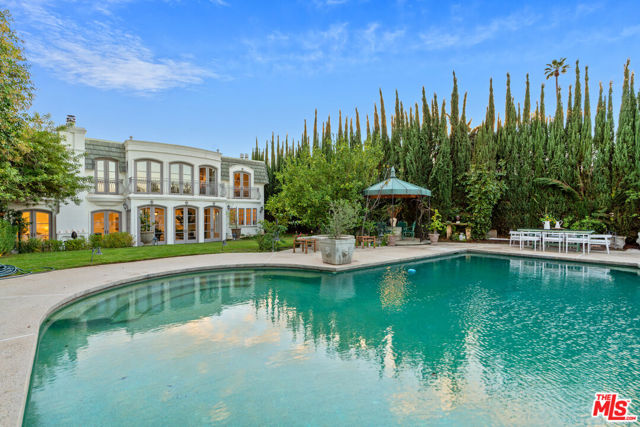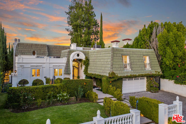An Iconic French Regency Estate in the Hills of Tarzana! High above the valley floor where the city lights shimmer like scattered diamonds, this enchanting near 6,000 sq ft French Regency estate awaits rich with history, wrapped in elegance, and crafted for those who savor life's most beautiful moments. A home not merely lived in, but loved. Inside, every detail speaks of artistry. The chef-inspired kitchen is a place where memories are made, an Italian marble clad masterpiece with professional Wolf appliances, a secret walk-in pantry, a generous center island, and a sunlit breakfast nook that invites lingering over morning coffee as the world awakens below. A hidden door of vintage brass once belonging to the Academy ushers you into the estate's private theatre, where the charm of Old Hollywood is reborn. Velvet shadows, a glowing bar, and nostalgic Nick Alain lighting create the perfect stage for evenings of laughter, stories, and film. The primary suite is a sanctuary of warmth and wonder. A private den and flickering marble fireplace set the tone for quiet nights in. A handsome office offers its own marble hearth ideal for inspiration to find you. Two bespoke dressing closets guide you into a spa-like haven where a pedestal tub with fireplace and professional grade double steam room shower with blu tooth, red light and eucalyptus inviting indulgent escapes. Wake each morning to the sun kissing the mountains, lose yourself in the romance of endless valley views. The heart of the home beats through its grand spaces, a dining room made for candlelit celebrations, a great room with soaring ceilings and French doors that open to the sky, and a welcoming family room where yet another fireplace dances in the evening glow. Outside, the magic continues. Wander through lush, private grounds. Share unforgettable feasts prepared in the outdoor kitchen and bar with multiple grills and stone pizza oven. Swim beneath sunlit skies or gather at the fire pit beneath the stars as the valley stretches out like a painted backdrop. This is more than an estate. It is a place where legends linger. Where beauty stands still. Where every day feels like a page from a timeless love story. Welcome home.