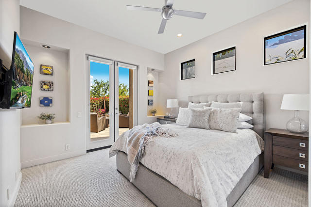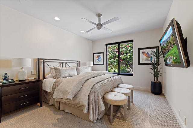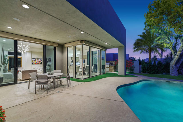 A perfect retreat and great opportunity to be a part of the BIGHORN community. This south facing unobstructed view of the mountains and golf course is a desirable location. Updated finishes and furnishings throughout. Obscure glass entry gate creates privacy to the beautiful courtyard with seating and fire table. The open great room floor plan is casual desert living at its finest. A primary bedroom retreat with a spa-like bathroom and two generous guest suites. The outdoor living is as desirable as the indoor and is a perfect desert oasis getaway. Living is easy in this contemporary residence.