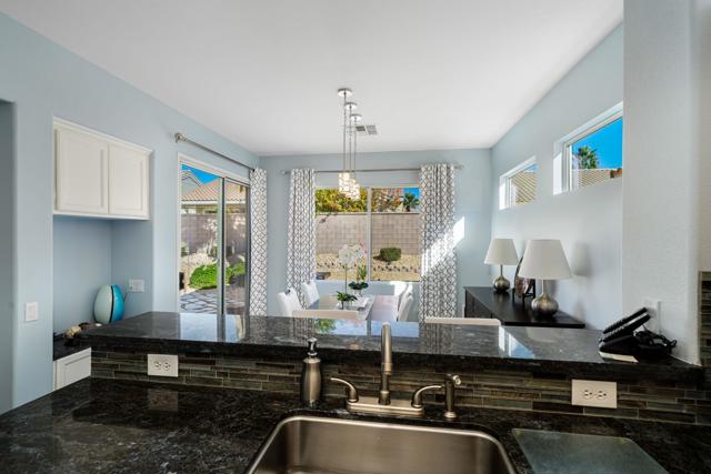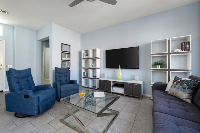 Sun City Palm Desert - Lanai. Welcome to carefree, active adult living at its finest in the desirable Sun CityPalm Desert. This impeccably maintained 2-bedroom, 2 bathroom home (1,213 sq. ft). is the definition of move in ready, offering a perfect blend of comfort, style and low maintenance convenience. Step inside to find a bright and inviting interior, decorated and in perfect condition. The open floor plan is ideal for both daily living and entertaining. The heart of the home flows seamlessly to the outdoors, where you will discover your private oasis with zero-scape landscaping-meaning more time for fun, less time for yard work.The true value is the Sun City lifestyle! This vibrant 55+ community is a hub of activity with countless clubs, hiking and biking trails, and restaurants. And for the pickleball enthusiast you are just a golf cart ride away from the away from the courts. Did I mention golf? Two beautiful 18 hole courses at Sun City for you and friends to enjoy.
