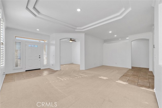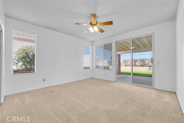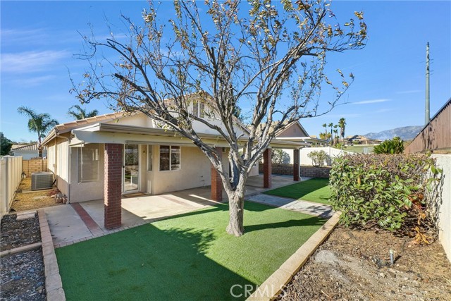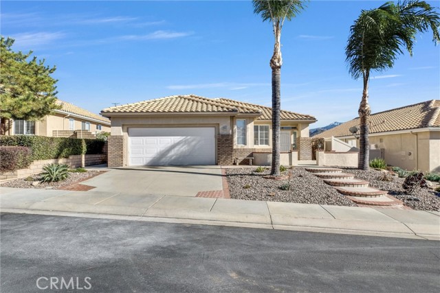 Beautifully updated Jasmine floor plan with mountain views, privacy, and modern upgrades. This highly sought-after and rarely available Jasmine model is one of the most desirable floor plans in the community. Located on a quiet cul-de-sac with beautiful mountain views and no rear neighbors, this updated home offers comfort, privacy, and easy single-story living. The front yard features low-maintenance rock landscaping, while the backyard includes brand-new synthetic grass installed in 2025. The spacious front patio is perfect for enjoying sunsets and mountain views. The backyard also features a fully covered patio ideal for outdoor dining or entertaining, along with four dwarf fruit trees—lime, tangerine, orange, and lemon—set in attractive brick-lined flower beds. Inside, the home features brand-new interior paint, 9-foot ceilings, and abundant natural light. The large open living room creates an inviting entry experience. Just off the entry is a versatile private room, perfect for a home office or flex space, with two windows providing great natural light. The open kitchen and family room feature Corian countertops, stainless-steel appliances, gas cooking, and a natural-gas fireplace with electronic starter. The layout flows seamlessly to the covered patio through 8-foot sliding doors from both the kitchen and primary bedroom. Additional upgrades include recessed lighting, a hallway sunlight tube, new 2-inch blinds, wood shutters in the living room, and outdoor sunshades on the family room and kitchen nook windows. The home includes an updated A/C and heating system (2021) with smart thermostat and an updated water heater (2021). The primary suite features a walk-in shower, dual sinks, private toilet area, crisp white cabinetry, Corian countertops, and a generous walk-in closet with mirrored doors. The guest bathroom includes Corian countertops and a bathtub/shower with clear glass door. Additional features include an indoor laundry room with cabinetry, updated door hardware, and an oversized two-car garage with additional golf cart parking and an EV charging plug. Sun Lakes is a vibrant 55+ resort-style community offering two golf courses, three clubhouses, pools, tennis, pickleball, fitness centers, restaurants, walking trails, and an active social lifestyle. Conveniently located near shopping, dining, Morongo Casino, Desert Hills Premium Outlets, and Palm Springs.