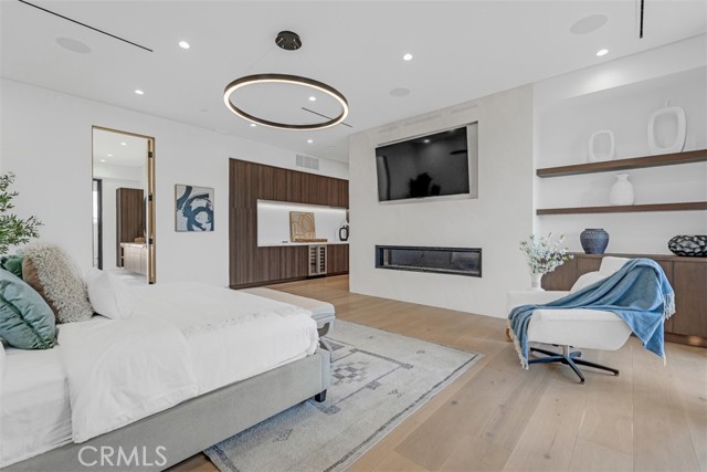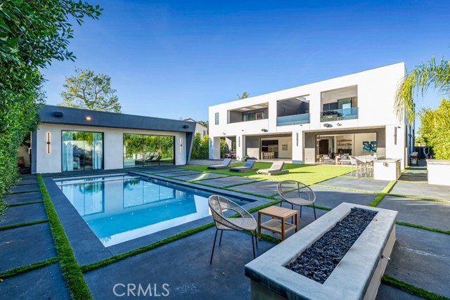 Introducing a stunning modern masterpiece in the highly coveted Chandler Estates. This gated 6-bedroom, 6.5-bath residence blends luxurious living with sleek contemporary design, full smart-home technology, and a truly effortless indoor–outdoor flow. A grand entrance welcomes you with soaring 11' ceilings, bright porcelain tile on the main level, and warm white oak flooring upstairs. Nearly every room features its own private balcony, bathing the home in natural light. The gourmet kitchen stands out with custom walnut cabinetry, a Sub-Zero refrigerator, Wolf range, and Taj Mahal leathered countertops across two impressive center islands. The expansive primary suite is a private retreat, complete with its own wine fridge, dual designer-crafted walk-in closets, and a spa-inspired bathroom that opens to a tranquil, secluded balcony. Thoughtfully designed for both everyday comfort and elevated entertaining, the home includes an indoor movie theater, dedicated office, spacious two-car garage, and ample driveway parking. The entertainer’s backyard is a private oasis featuring a sports court, built-in BBQ center, sparkling pool and spa, and a beautifully finished 1 bed/1 bath ADU—ideal for guests or extended family. A rare standout feature is the panoramic rooftop deck with sweeping 360° views, prepped for a built-in barbecue and fire pit—an unforgettable space for sky-level entertaining. Enhanced with smart-home automation, surround sound, solar panels, and twelve HD security cameras, this property offers modern convenience with complete peace of mind. Located moments from neighborhood markets, houses of worship, and several prestigious private schools, this home exemplifies exceptional craftsmanship and luxury living at its finest.