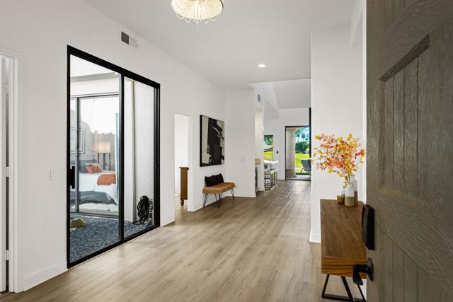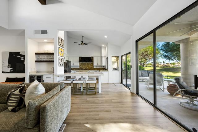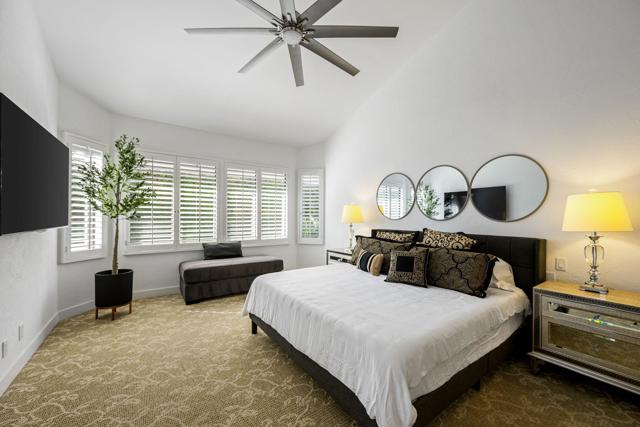 Located on the world-renowned Stadium Course at PGA West, this updated and spacious Legends 10 model offers 4 bedrooms and 3.5 baths across 2,272 square feet of thoughtfully designed living space. Enjoy true VIP seating for The American Express Tournament from your south-facing patio overlooking the 5th green, where you and your guests can relax in the sun and watch the pros up close!The expansive back patio is an entertainer's dream, with panoramic views of both the golf course and the Santa Rosa Mountains, creating a stunning backdrop for gatherings day or night. Two nearby community pools and spas provide effortless resort-style living, giving you easy access to amenities without the burden of maintenance.Inside, abundant natural light showcases the many upgrades throughout the home. Improvements include updated flooring, baseboards, lighting, and ceiling fans, along with a fully enclosed fourth bedroom with closet. The kitchen has been opened to the living room and features a custom built-in quartz-top dining table, perfect for casual dining and entertaining. Additional updates include a new washer and dryer, garbage disposal, and dishwasher.The primary bathroom offers a spa-like retreat with an updated porcelain shower and a personal sauna for ultimate relaxation. This beautifully appointed home is offered fully furnished per inventory and comes move-in ready, complete with a golf cart. Turn-key and ready for your immediate enjoyment, this is truly a must-see property. THIS IS THE ONE!