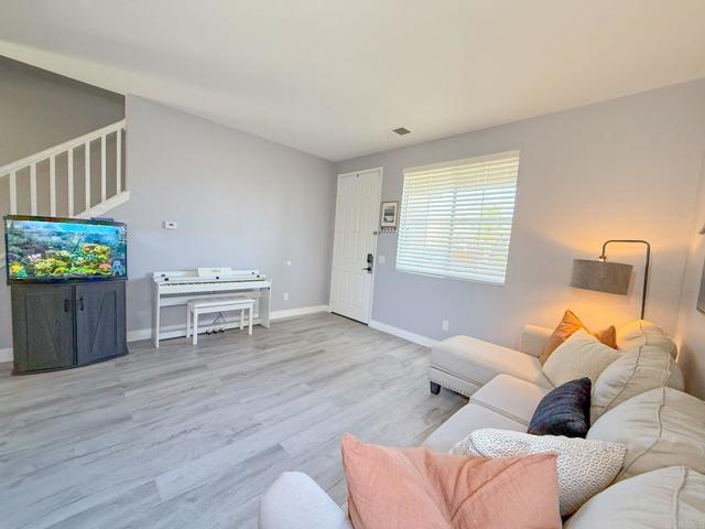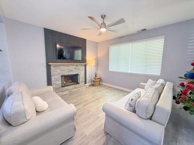Welcome to your forever home! MOVE-IN READY! This elegant residence offers a great layout with a formal living room at the entrance. The heart of the home is the open family room, dining, and kitchen area at the back, perfect for entertaining and everyday living. The family room features a cozy fireplace, creating a warm atmosphere. The kitchen is a delight, with granite countertops, white shaker-style cabinets, a peninsula with bar seating, stainless steel appliances. New water heater, New waterproof laminated floors, New upgraded bathrooms, New Blinds, New interior paint. A powder room and laundry room are located just off the kitchen, easy access to the 2-car garage. Upstairs, you'll find four bedrooms and 2.5 bathrooms, offering ample space. The oversized primary suite features double door entry, an ensuite bathroom with a dual sink vanity, and a spacious walk-in closet. Enjoy the outdoors backyard with new turf grass and new fence. Spacious covered back patio, ideal for outdoor gatherings and relaxation. "Save significantly on utilities with solar! This property comes with a new solar array and battery backup, covering most of energy needs, protecting you from rising utility costs. Located in a fantastic neighborhood, this home is close to schools, shopping centers, and dining options, providing convenience. Don't miss the opportunity to make this beautiful home yours.
