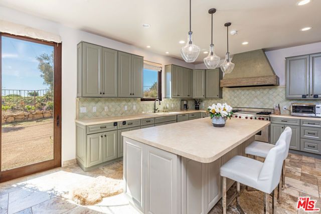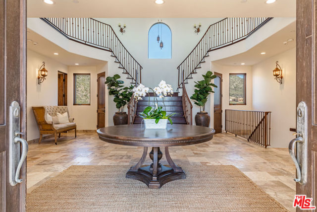 A private Malibu Tuscan estate on over five acres, 4800 Latigo Canyon Road features spectacular whitewater ocean, mountain, and canyon views and gorgeous architecture. This 8,558 square foot, five-bedroom main home offers travertine and alder floors and a chef's kitchen with a Wolf range, double ovens, and a large center island opening to the family room. Enjoy the formal living room with a fireplace and magnificent views of Point Dume. The primary suite includes an expansive balcony, double walk-in closets, a spa tub, and an oversized glass mosaic-tiled shower. Opportunities for recreation and leisure abound with a spacious gym, theater room, detached 2 bed 2 bath guest house, infinity pool, and spa. A three-car garage offers convenience and possibilities for further development on the grounds are endless with room for a tennis court, orchard, vineyard or putting green. Just moments away from the beach, enjoy a Malibu lifestyle of beauty within this unique retreat.