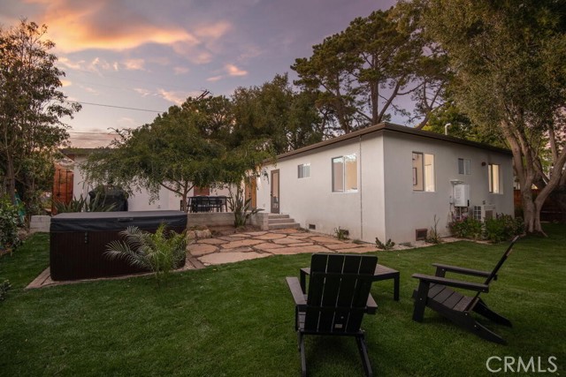 Ideally located on the coveted Santa Barbara Mesa— only 2 blocks to Leadbetter Beach, the Harbor, Shoreline Park, and Santa Barbara City College—this exquisitely redesigned coastal retreat blends architectural sophistication with modern comfort. Positioned on a 5,200 SF lot within the sought-after Washington School District, the property offers exceptional appeal for both homeowners and investors, with strong rental demand from SBCC and families alike. Taken down to the studs and fully rebuilt with permits, this stunning 2-bedroom, 2-bath residence (plus an additional extra bedroom/office/loft room in the detached garage) showcases vaulted ceilings, exposed steel and wood beams, and a dramatic peninsula fireplace that anchors the open-concept living space. Thoughtful design