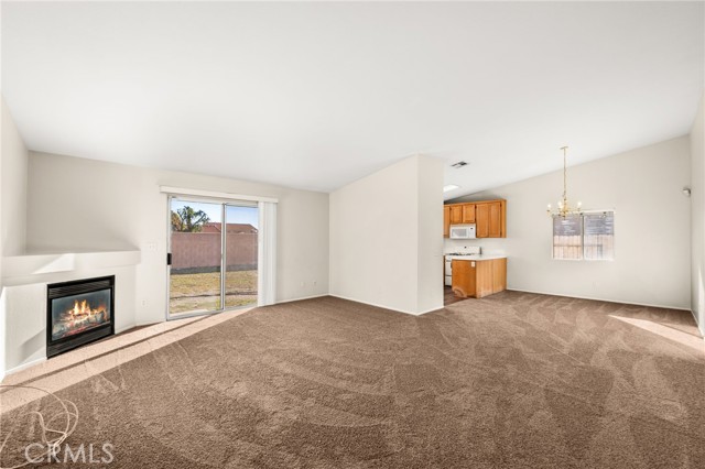 Single story Rialto home on a cul-de-sac with a spacious lot, attached two car garage, and no HOA! Conveniently located, just a three minute drive to Wilmer Amina Carter High School and only six minutes from the vibrant Renaissance Marketplace for your shopping, dining, and entertainment needs. Enter directly into the home from the attached garage. The living room, adjacent to the open concept kitchen and dining rooms, feature vaulted ceilings. There is brand new carpet throughout the home. A sliding glass door leads into the blank canvas backyard - ready for your vision! There is a gas fireplace, and the kitchen features a gas range. There are three bedrooms, including a sizable primary bedroom with a walk in closet and it's own bathroom. This move in ready home is ready for you to make it your own!