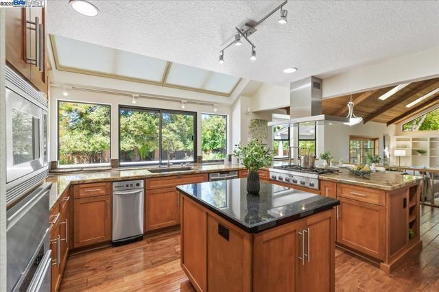 Open Sat/Sun 1-4 pm. - Private South Livermore Haven. Discover your dream retreat in South Livermore on a large, private lot with wide streets and room to play. Perfect for active buyers who love to entertain, this home offers space to live, relax, and host in style. The main level features a spacious primary suite plus an additional bedroom or office. Upstairs includes two bedrooms, a remodeled bath, and a versatile loft with built-in desk. The fully remodeled kitchen shines with high-end appliances and modern finishes, opening to an impressive family room with wood-lined cathedral ceiling. Outside, enjoy the expansive yard, sparkling pool, and plenty of space for gatherings. Huge driveway, storage room, and 3-car garage. No HOA.