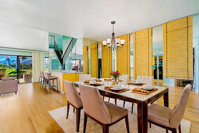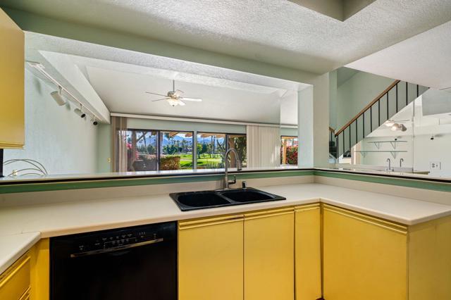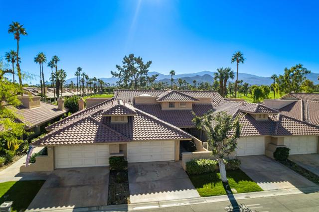 Welcome to Woodhaven Country Club and this 3-bedroom, 3-bath fixer tucked into one of the most coveted spots in the community overlooking the 17th green. Translation: prime location, incredible bones, and a blank canvas ready for a new owner's vision.The home captures sweeping southern panoramic views of the golf course, a serene water feature, mature trees, and the Santa Rosa Mountains--views that do not get old. Inside, the layout offers great architectural interest, including an inviting atrium, wet bar, and two guest rooms, one with an en suite bath. The upstairs primary suite includes a sitting area that can also be used as an office.Woodhaven Country Club is a highly sought-after gated community featuring an 18-hole golf course, tennis and pickleball courts, a fitness center, and a clubhouse with restaurant and lounge. You're minutes from top dining, shopping, and medical facilities. HOA perks include cable TV, internet, trash service, a guarded gate, four pools (heated in winter), four spas, and social membership--with discounted golf memberships available to residents.If you've been waiting for a rare opportunity to customize a home in one of Woodhaven's best locations, this is it. Bring your vision and schedule your private tour today.