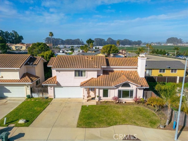 Welcome to your dream coastal retreat nestled in between the sun-kissed shores of Oceano Beach and Grover Beach. This captivating 2-story residence boasts timeless elegance and modern comfort, situated in a tranquil cul-de-sac setting. As you step inside, you're greeted by the warm embrace of vinyl plank flooring that gracefully guides you through the common areas. The expansive living room features vaulted ceilings, exuding an airy ambiance, while a cozy fireplace invites you to unwind after a day of coastal adventures. Entertain with ease in the open-concept floor plan, seamlessly connecting the living, dining, and kitchen areas. Throughout the home you will find an abundance of storage. The large primary suite offers a spacious walk-in closet and en-suite bathroom. Venture outdoors to charming deck patio areas, ideal for al fresco dining and basking in the coastal breeze. Meanwhile, the front yard lawn sets a picturesque scene, welcoming you home with its inviting curb appeal. Conveniently located just 1.4 miles from the beach, this coastal gem offers the perfect blend of city and coastal living.