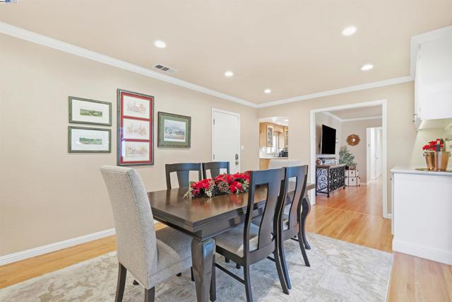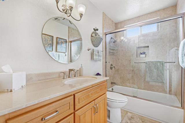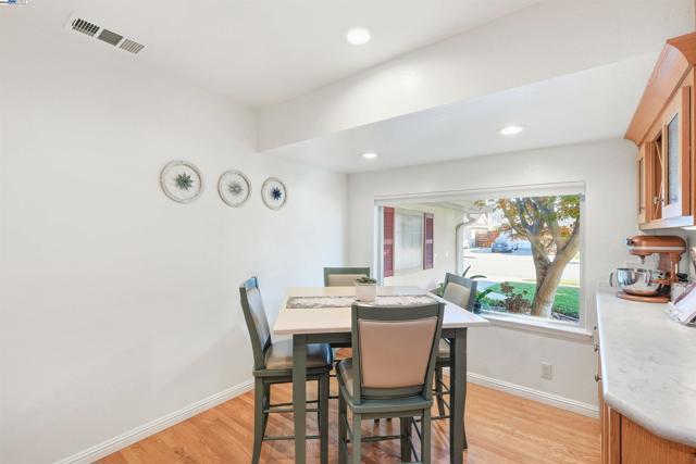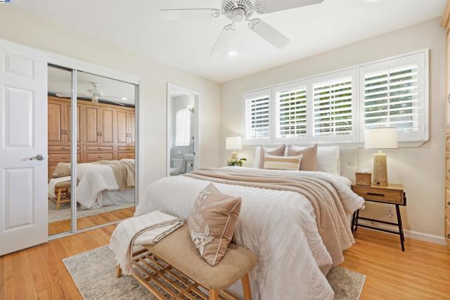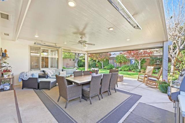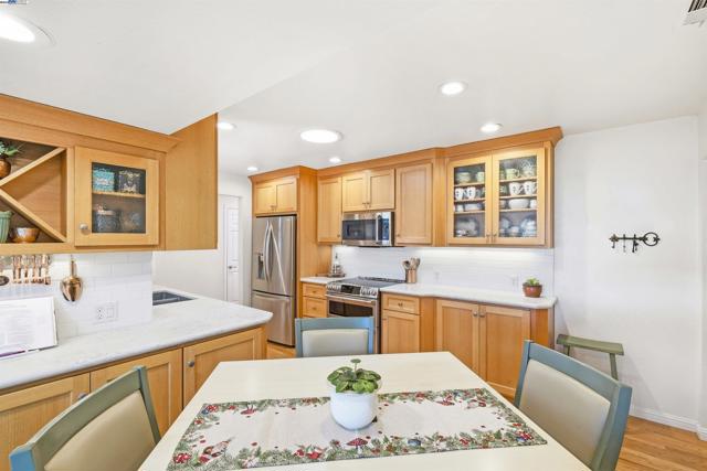 Located in the highly desirable Glenmoor neighborhood, this home blends classic charm with premium updates throughout. The remodeled kitchen features custom oak cabinets, leathered quartz counters, subway tile backsplash & stainless steel appliances: induction cooktop, double ovens, microwave, dishwasher and fridge. The bright dining nook offers an everyday gathering space, while the formal dining room offers ample space to entertain and includes quality built-in cabinetry. All three bedrooms have plantation shutters and closet organizers, with the primary offering a full wall of built-in storage. Additional features include central A/C, owned solar panels, recessed lights and beautiful hardwood flooring throughout the home. The backyard is ideal for year-round entertaining with a hot tub, built-in BBQ, natural-gas fire pit and a covered patio equipped with lighting, fan & electric heaters. There is also an upgraded shed perfect for a hobbyist or home office. The finished garage includes cabinets, epoxy floors, a sink, washer/dryer and attic storage. This home is ideally located near great schools, parks, shopping & local eateries. Perfect for commuters, nearby 880, 680, Dumbarton Bridge, BART & Centerville Station. Don’t miss your chance to call this amazing Glenmoor home yours!