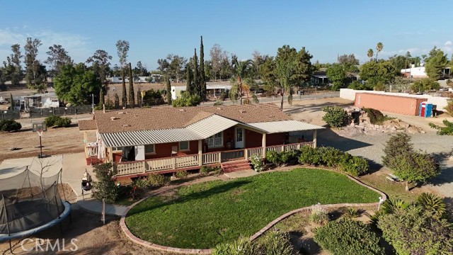 Welcome to this beautiful freshly remodeled ranch-style home in Mead Valley, nested on over 2 acres of flat usable land, perfectly combining modern upgrades with classis county charm. Immaculately kept and truly move-in ready, this home offers 3 bedrooms, office room that can easily be used as 4th bedroom and 2 full baths, living room spaces filled with natural light, open inviting layout, and highly-quality finishes throughout. Spacious private front porch with a view of the entire property, perfect to enjoy your evenings with family and friends. Set on a spacious lot ideal for horses and outdoor living, plenty of truck parking space with entrance access from rear and front property. Property features, electric front gate (main entrance), chainwheel rear gate, 6 cover horse stalls, a saddle storage, wash stall, round pen, 16 horse corrals and a cover patio with a private work shed AC unit. A TRULY ONE-OF-A-KIND PROPERTY!!!