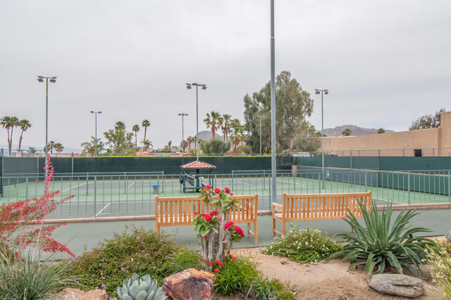 Best location across from the Clubhouse, South Palm Desert, Mountain Views, Remodeled Discover this wonderful single-level home in the beautiful hills of South Palm Desert! Located in a charming, gated community of just 100 residences, this property offers an ideal setting for an active lifestyle complemented by stunning mountain views This spacious 1,823 sq ft home features three bedrooms and two bathrooms The popular great room flows effortlessly into a sizable living area that opens to a back patio, providing spectacular views of the Mountains The expansive primary bedroom suite includes a walk-in closet, and an en-suite bathroom with a shower and double vantities The kitchen is well-appointed with stainless steel appliances, stylish granite countertops, a large bar area perfect for entertaining, and plenty of cabinet space. Residents of this community enjoy access to the Palm Desert Tennis Club, a vibrant social hub offering eight lighted tennis courts, pickle ball, an indoor squash court, a bocce ball area, a main 60-ft heated lap pool, and a pool/spa in each quad. The HOA dues cover comprehensive tennis programs, an on-site tennis professional during the season, a fitness center, Wi-Fi, and basic cable. Please be aware that the clubhouse is being remodeled and is expected to be completed 2026 .Please Note the home is not furnished as shown in the pictures