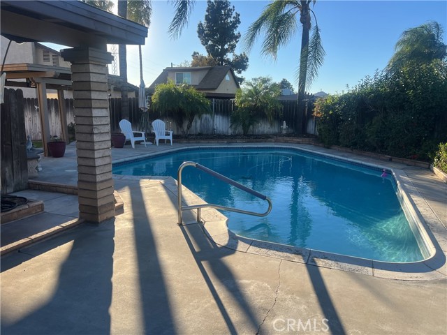 Welcome to your future home in Colton, CA! This charming residence features 3 spacious bedrooms and 2 bathrooms, conveniently situated on a serene, wide cul-de-sac. The expansive backyard provides ample space on all sides, perfect for outdoor activities and entertainment. Dive into relaxation with a large pool, complete with a covered patio area ideal for barbecues and gatherings. Step inside to discover that the homes is NEWLY painted, with BRAND NEW water-resistant light grain vinyl wood plank flooring throughout the living area, complemented by cozy carpeted bedrooms. You'll appreciate the modern lighting fixtures, as well as the thoughtfully updated electrical outlets and covers. The patio cover has been recently re-roofed, ensuring durability for your outdoor enjoyment. Additionally, the pool pump motor was replaced last year, and the water heater was updated earlier this year for your peace of mind. This home is an excellent starter option, providing a canvas for you to put your own personal touch. Don't miss the opportunity to make this lovely house your own—you're going to LOVE it!