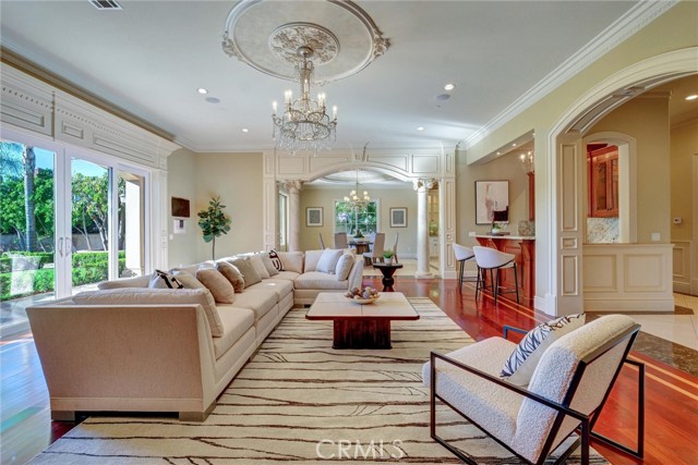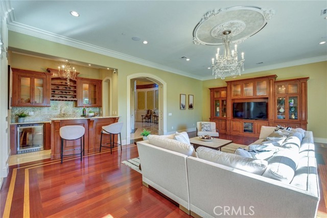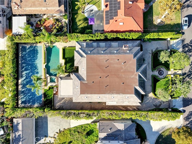 This luxurious, modern French-style home in Arcadia showcases exceptional architectural design and craftsmanship. Upon entering, you are greeted by a dramatic 25-foot cathedral ceiling, stunning 6-foot crystal chandeliers, a marble foyer, and grand double glass-and-iron doors. The property is gated and private. The residence features six bedroom suites—two on the main level and four upstairs—along with seven bathrooms, a formal living room, a formal dining room, and a spacious family room with a wet bar overlooking the beautifully landscaped backyard. The outdoor area includes a saltwater pool and spa, a basketball court, and a patio ideal for entertaining. Additional highlights include an 8-seat Blu-ray/3D home theater, a private elevator, a separate wok kitchen, a wine cellar, and professional Viking appliances, brand new carpet, new paint. Elegant details such as coffered ceilings, crystal chandeliers, Italian marble, granite finishes, custom moldings, a security camera system, and an intercom system complete this exquisite home. A must-see property!