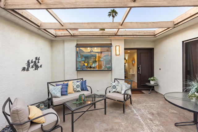 Step into this cheerful, light-filled gem--just bring your toothbrush! This semi-renovated home offers true turnkey living with fresh, modern furnishings and thoughtful upgrades throughout. Every amenity is at your fingertips for effortless comfort.Enjoy two beautifully renovated bathrooms, solid hardwood floors, a brand-new AC unit, and sleek new ceiling fans. Skylights fill the home with natural light, creating a bright and airy atmosphere.The open-concept layout is ideal for entertaining, while separated bedroom suites ensure perfect privacy for family and guests.Rancho Las Palmas Country Club offers an unmatched lifestyle with 29 pools/spas, fitness center, clubhouse dining, 27 holes of golf, and tennis. Ideally located across from The River with shopping, theaters, and fine dining at your doorstep.This stylish, well-appointed home comes furnished per inventory list. A must-see opportunity to enjoy the best of Rancho Mirage living!