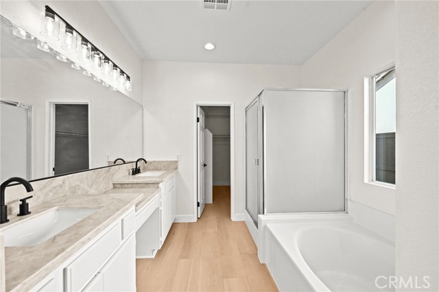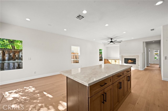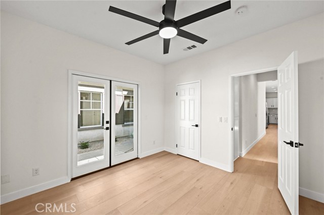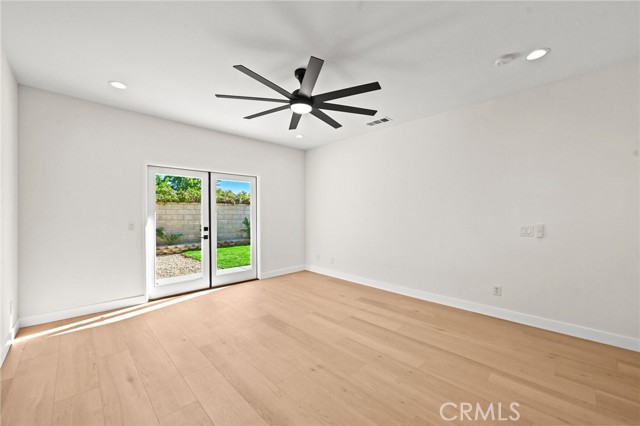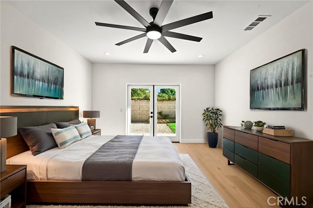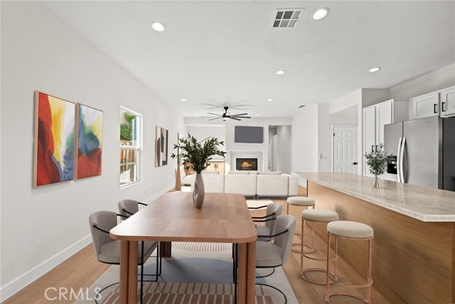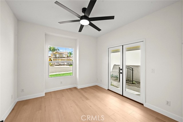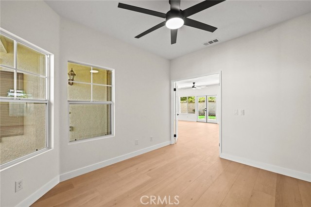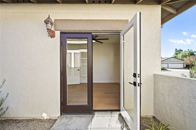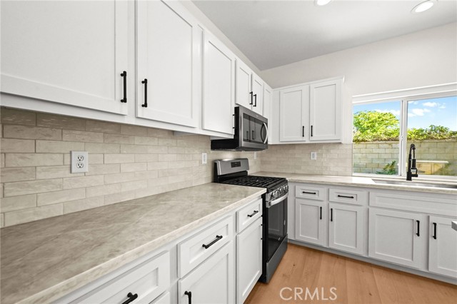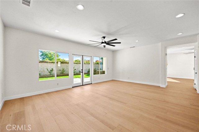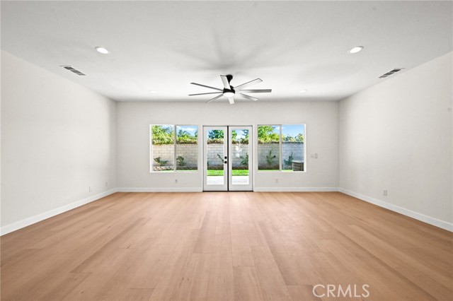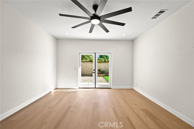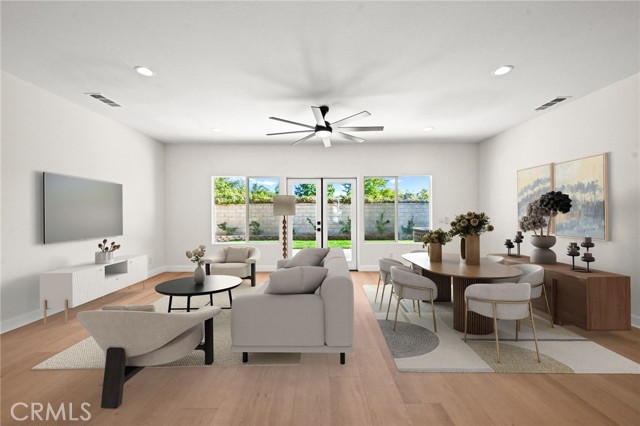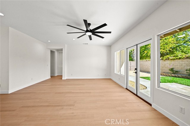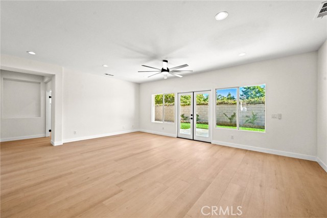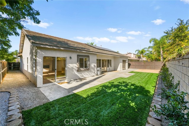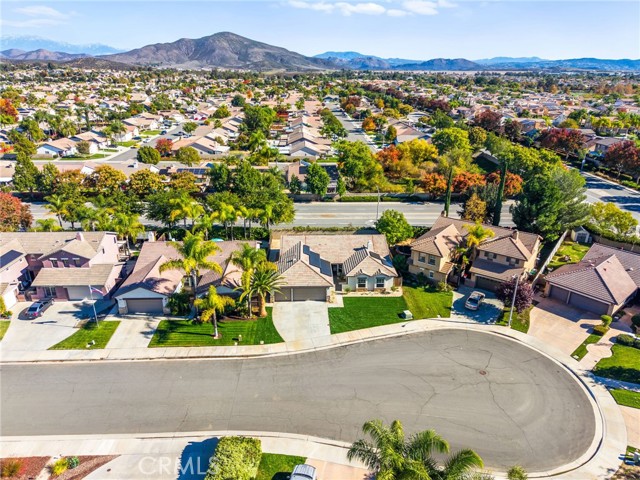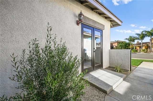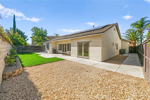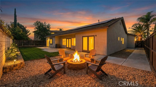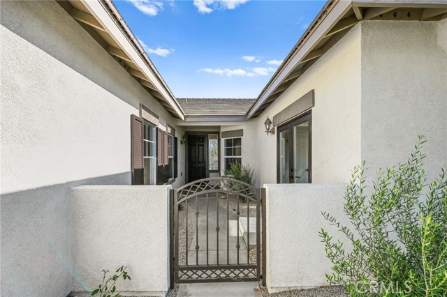 Exceptional fully remodeled single story family home in Winchester Ca, located near restaurants and shops, just blocks from the approved and coming Murrieta Marketplace and falling inside the highly sought after Temecula School District. Upon entry, passing through the private gated courtyard, you are greeted inside with large open spaces finished in wide plank natural tone laminate flooring, fresh neutral paint, abundant amounts of natural lighting, in a highly desirable, multi-winged single level floor plan. The grand entry room is a versatile space, usable for a large living room, family room, dining area, game room or other multipurpose area that separates the north wing from the south wing of the home with rear yard access through French double glass doors. In the south wing adjacent to the grand entry and connected office/5th bedroom, you will find the open concept, large kitchen complete with large central island, finished in natural white oak cabinets and seated bar space. The kitchen and all other counters throughout are finished in modern, natural tone Taj Mahal high quality quartz, including bathrooms, laundry and entertainment cabinetry. Attached to the open kitchen is a great room style layout dining and living room area complete with fireplace, large ceiling fan and generous amount of recessed lighting. The remainder of the South wing offers 2 generous bedrooms with ceiling fans and a full bathroom, one of the bedrooms having its own French door entry from the courtyard, creating a mother-in-law, guest suite option. In the North wing is the large primary bedroom with double French door entry and glass French door rear yard private exit, connected to the primary bathroom suite complete with dual sinks, central vanity, soaker tub and a stand up shower. Additional in the North wing is another generous bedroom with private bathroom suite, and a spacious common area laundry room with wash basin. The spacious 3 car garage offers work bench and storage cabinets. Further upgrades include tankless water heater, all bedrooms have ceiling fans, generous amounts of recessed lighting throughout, and a high output 32 panel leased solar system. Outside, both front and rear yards are freshly fully landscaped on timed sprinkler systems. The exterior of the home additionally has been freshly painted. Located on a quiet cul-de-sac in a low tax area in the affordable HOA of Dutch Valley, this is an immaculate, well laid out, must see home on every level.